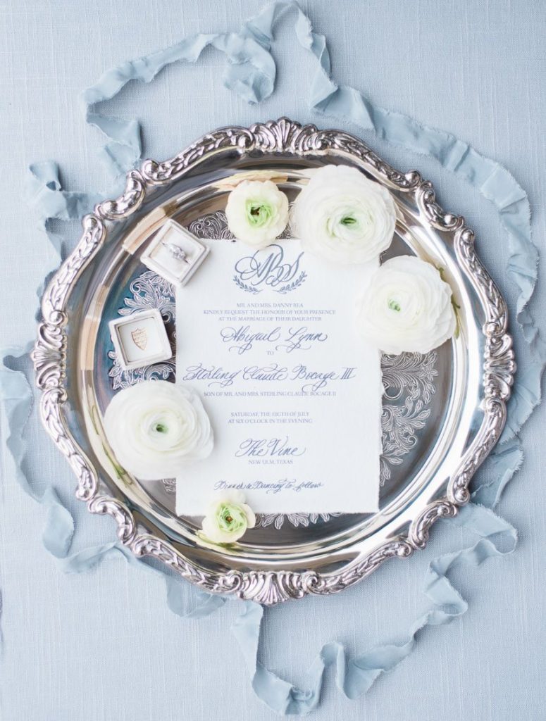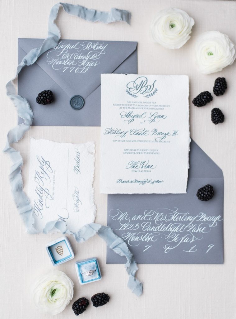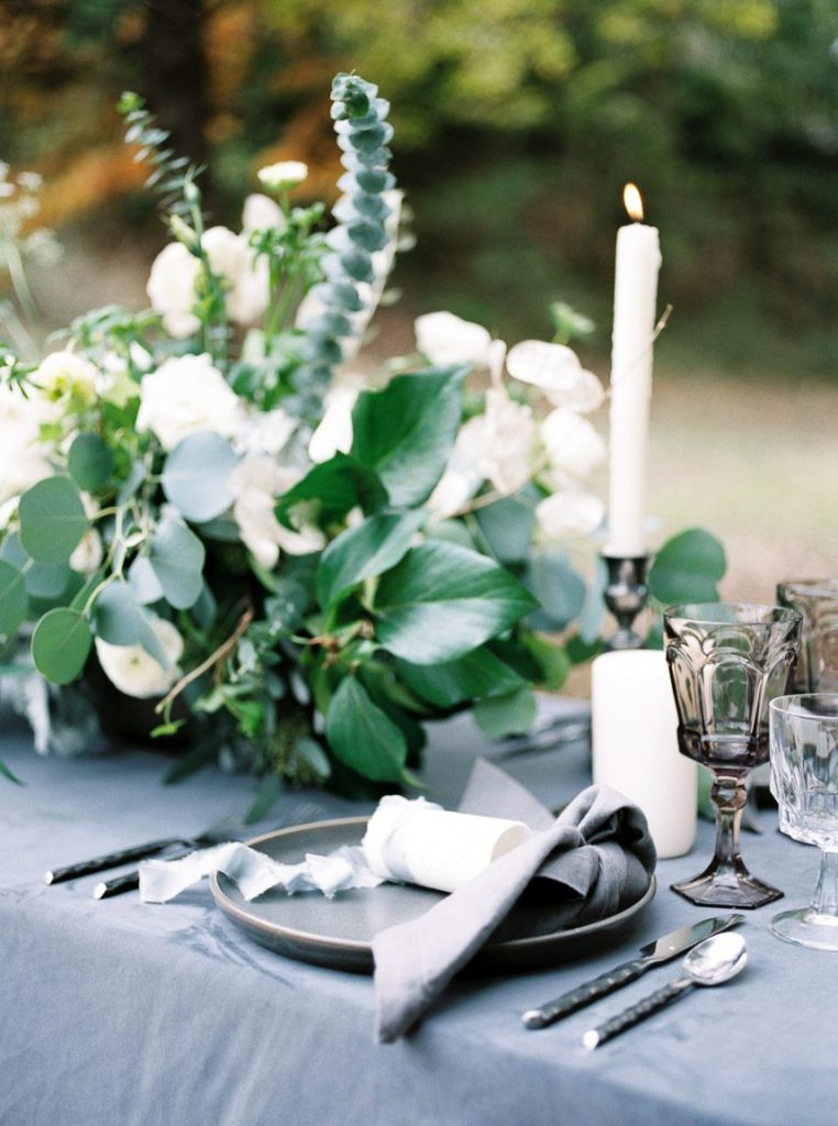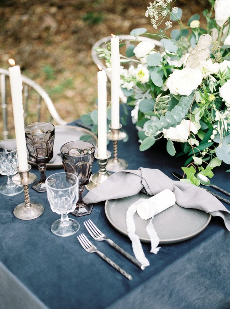 Taking cues from romantic stories of old, this Secret Garden-inspired styled shoot evokes emotions of enchantment, mystery and love. We’re swooning over each and every detail so beautifully brought to life by floral adornments from Flower Vibes, from the cake to the tablescape and everything in between. The bride’s bouquet features an abundance of freeform greenery, telling us to embrace our wild side when it comes to love, while blush and white roses breathe life into a dark and muted color palette. We love the regal calligraphy on the stationery, inviting us to step into this fairy tale, along with the bride’s soft and romantic gown from Unbridaled and timeless hair and makeup by Hey Lovely. Dusty blue velvet linens pair so well with the groom’s gray suit and additional textures of this shoot, while the candlesticks, silver chairs and glassware all contribute to the moody, whimsical vibe. A Secret Garden-inspired aesthetic brings feelings of romance, enchantment and happily ever after, and we can’t get enough of this look! Happy scrolling!