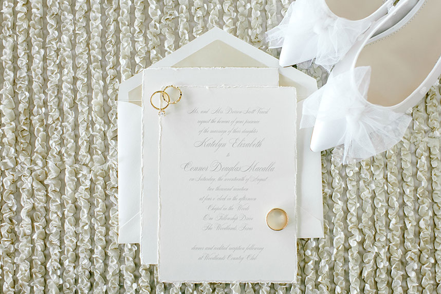 This simple traditional wedding at The Woodlands Country Club is reminding us of all the reasons we love a wedding with a neutral color palette! Katelyn Vincik and Connor Macalla’s wedding day was full of simplistic neutral details that look oh-so-dreamy. After a sweet ceremony to tie-the-knot, the couple was able to celebrate their new marriage with all of their family and friends thanks to LG Event Entertainment and Production, which not only provided killer entertainment for the evening, but also tasteful lighting options and a fun photo booth! EB Inc. Event Rentals brought elegant decor and rental pieces that accomplished Katelyn’s traditional vision, which was then topped off perfectly with elegant white, ivory and subtle peach florals. Kati Hewitt Photography and Reverent Wedding Films were there every step of the way to capture all of the sweet moments of the Macalla’s wedding day. This one sure is a beauty, and we couldn’t wait to share with you!