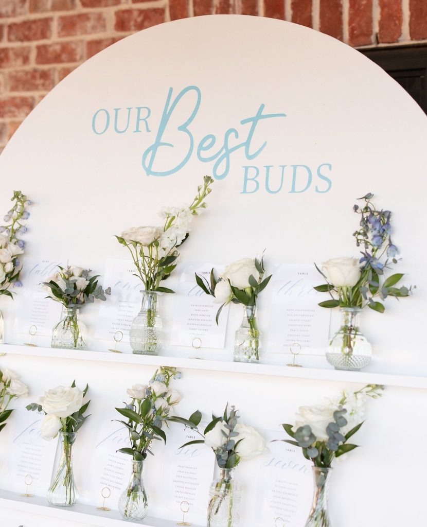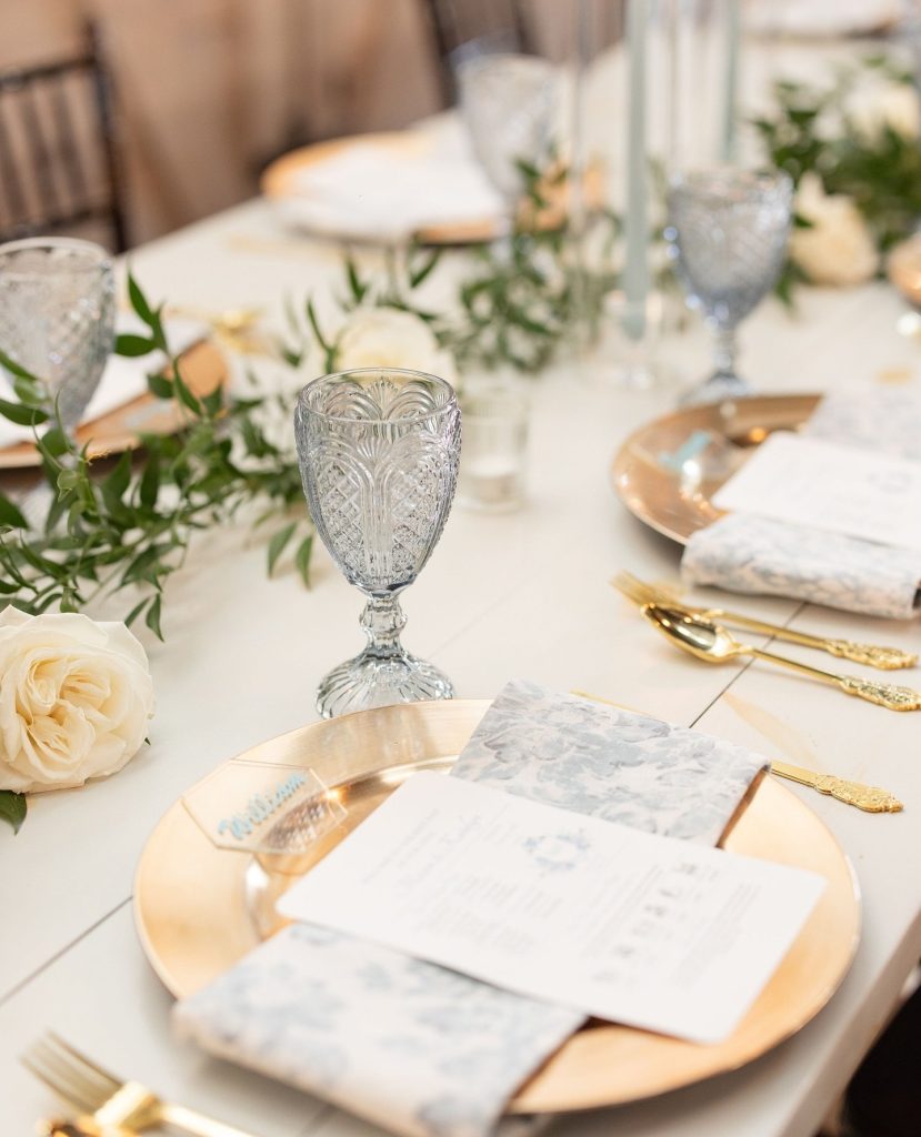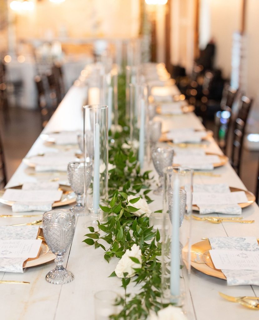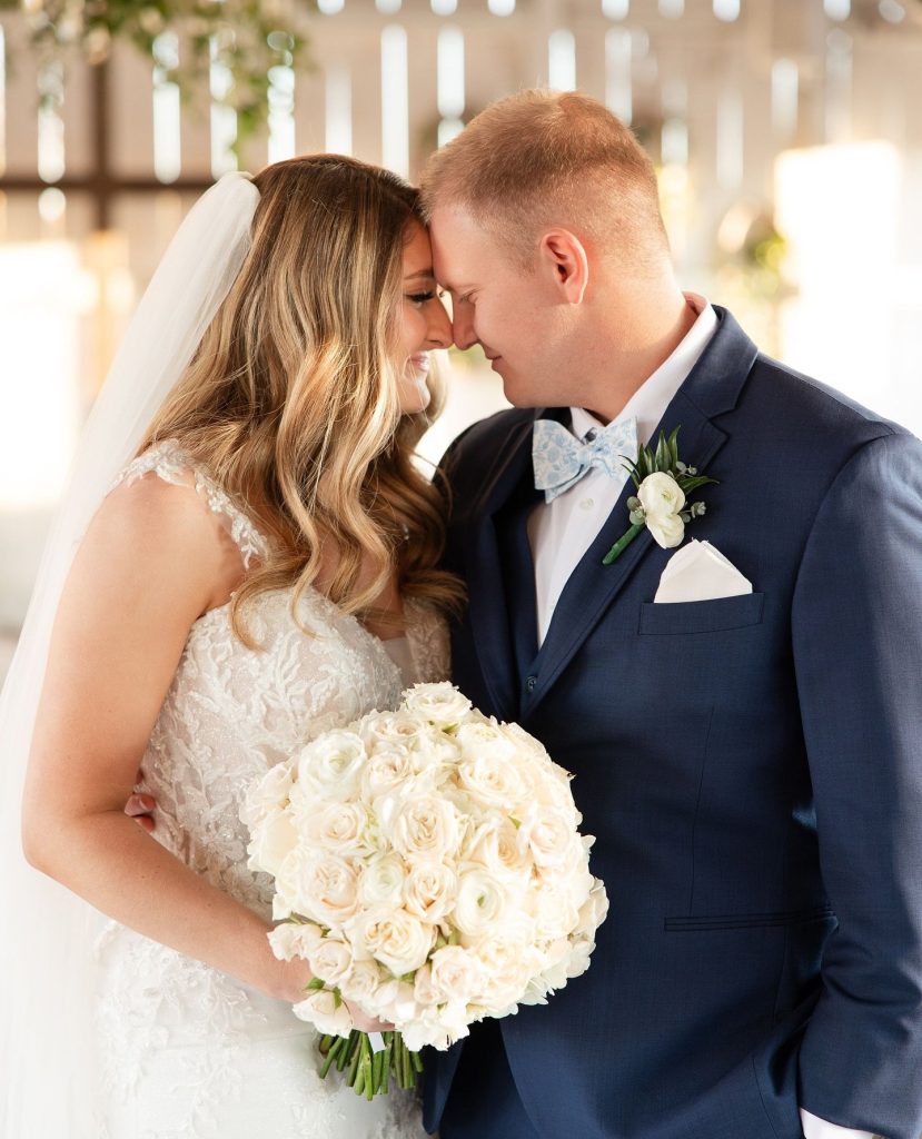 K & M’s wedding day was a vision of elegance, with delicate blooms from Monica’s Brides & Touch of Glitz Flowers and touches of blue woven into a sea of white. The bride stunned in a gown from Brickhouse Bridal, and intricate bride and groom cakes from Bavarian Cakery added a sweet touch to the celebration!