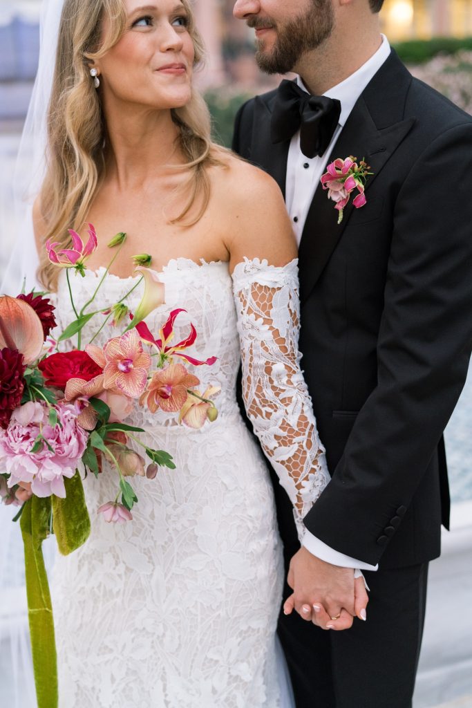 Stephanie and Sam’s day was a perfect reflection of beauty and personal charm. House of Hough by Premiere Events created an elegant setting filled with classic details, from soft floral arrangements to beautifully set tables that complemented the romantic atmosphere. Their vintage-inspired cake was a standout, adorned with intricate piping and a sweet heirloom topper that added sentimental charm. Surrounded by lush greenery and stunning scenery, every moment felt straight out of a fairytale!
