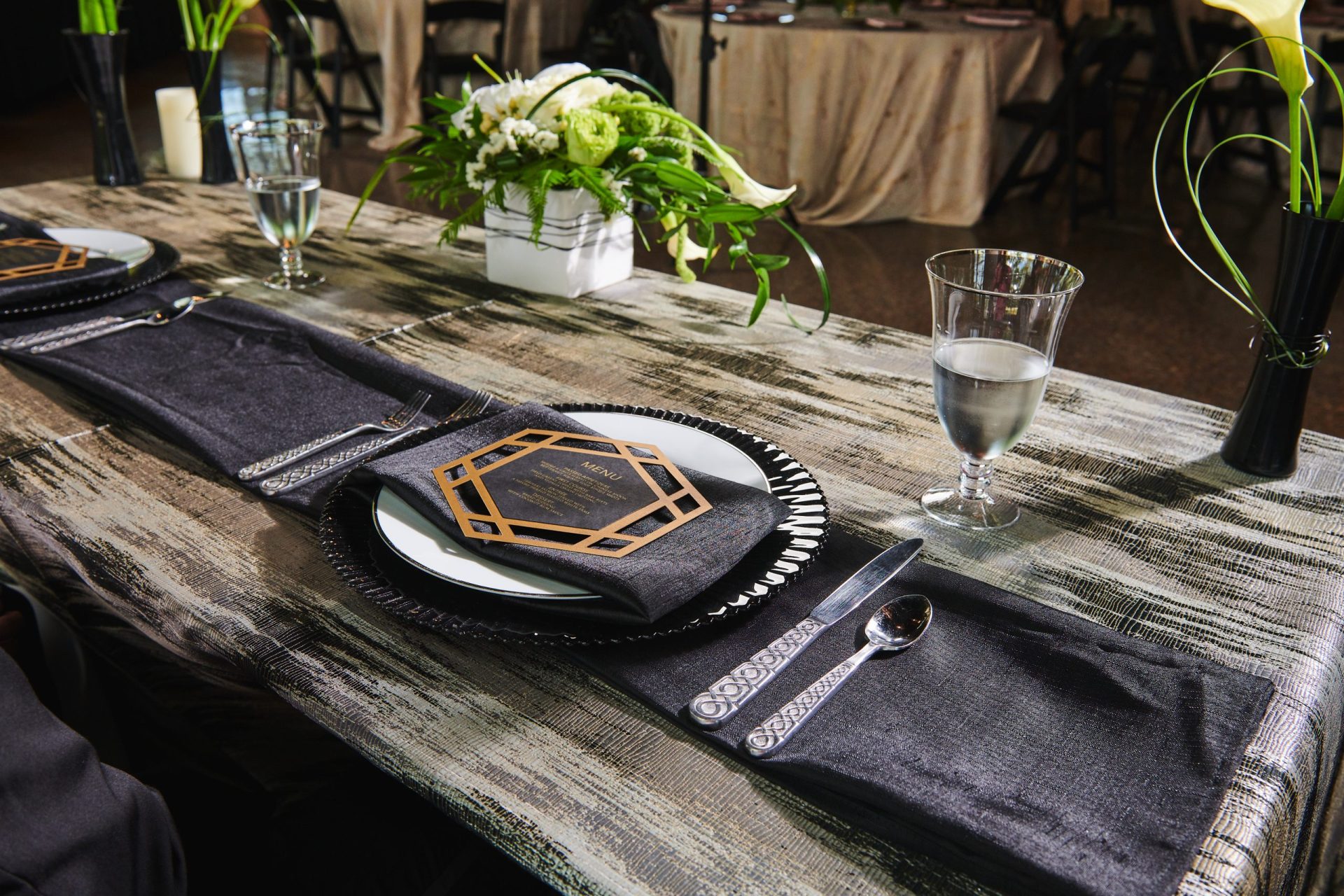 The color palette can really set a mood. For example, peach, pink and white say light, excited and girly; while emerald green, black and gold say moody and modern. Sticking to a vibe is just as important as sticking to a color scheme. With the color palette and vibe set, everything else can easily fall into place!