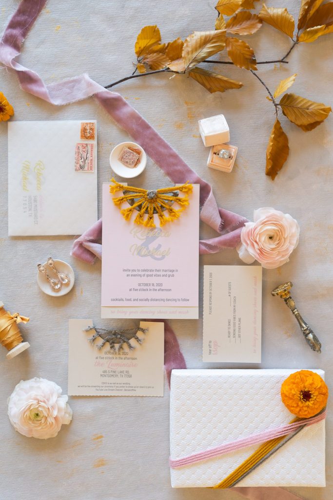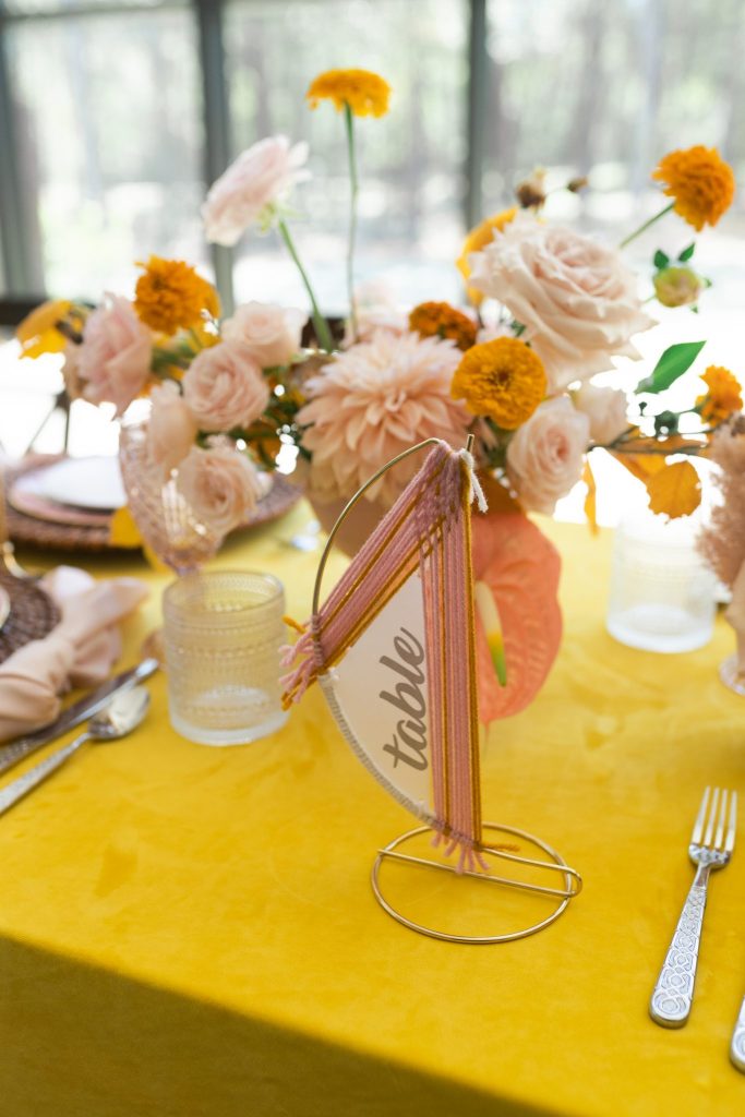Nix the standard fall color scheme and upgrade your bohemian style with a burst of sunshine yellow! This cheerful styled shoot brings the industrial, moody setting of The Luminaire to life, thanks to dried prairie grasses and exceptional natural lighting. Soft and earthy invitations carefully handcrafted by the shoot’s designer, Whimsical Events, are truly one-of-a-kind – macramé details and a muted yellow and pink color palette couldn’t be a better fit for this free-spirited celebration! Bright velvet textured linens in sunshine yellow add warmth to the space and make the perfect foundation for dreamy tablescapes featuring warm florals, eclectic vintage-style glassware and mini dreamcatcher place cards to match the signage from Whimsical Events. This cheerful boho wedding inspiration is truly one of our all-time favorites, as we haven’t been able to take our eyes off of the absolutely adorable photos from Switch & Click Photography! Scroll to see all of the details that’s sure to bring a whole lot of sunshine to your day and brighten up your wedding inspiration. Cheers!