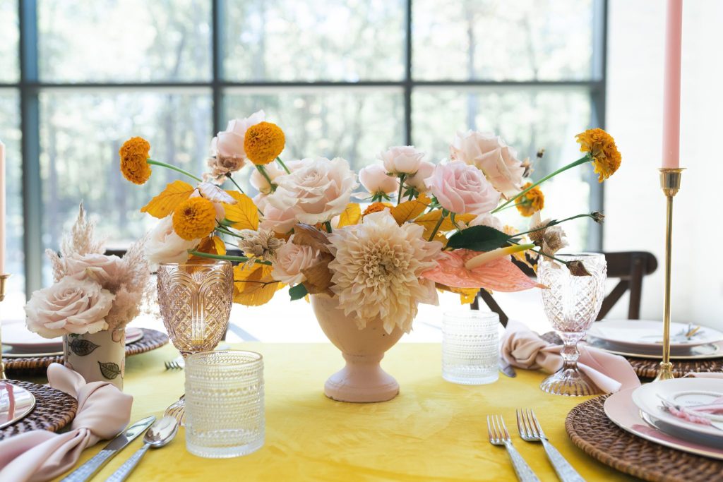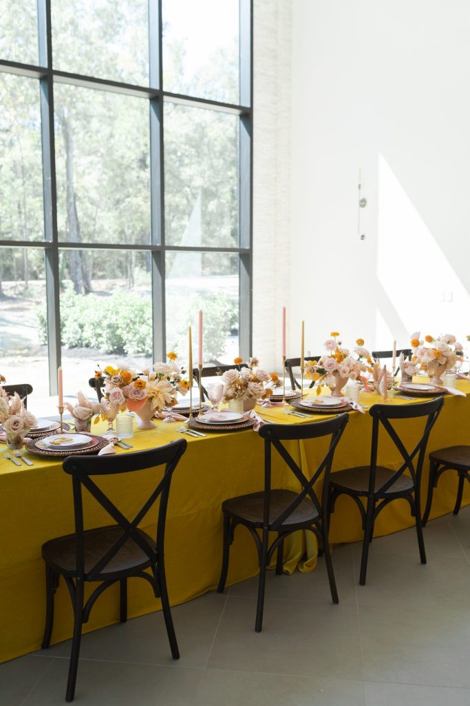 Nix the standard fall color scheme and upgrade your bohemian style with a burst of sunshine yellow! This cheerful styled shoot brings the industrial, moody setting of The Luminaire to life, thanks to dried prairie grasses and exceptional natural lighting. Soft and earthy invitations carefully handcrafted by the shoot’s designer, Whimsical Events, are truly one-of-a-kind – macramé details and a muted yellow and pink color palette couldn’t be a better fit for this free-spirited celebration! Bright velvet textured linens in sunshine yellow add warmth to the space and make the perfect foundation for dreamy tablescapes featuring warm florals, eclectic vintage-style glassware and mini dreamcatcher place cards to match the signage from Whimsical Events. This cheerful boho wedding inspiration is truly one of our all-time favorites, as we haven’t been able to take our eyes off of the absolutely adorable photos from Switch & Click Photography! Scroll to see all of the details that’s sure to bring a whole lot of sunshine to your day and brighten up your wedding inspiration. Cheers!