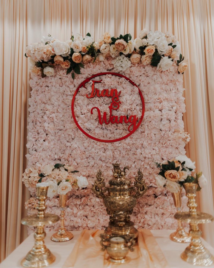 “It was really important for us to include pieces of our Asian heritage into the wedding. I am Vietnamese and Jonathan is Taiwanese. One thing that was very important in both of our cultures is a tea ceremony. The purpose of a wedding tea ceremony is for the groom to ask the bride’s family for her hand in marriage and celebrate the union of the two families while honoring our parents, family and ancestors. It was a very intimate and memorable ceremony that I am so happy we have and can reflect back on.” – Noelle + Jon