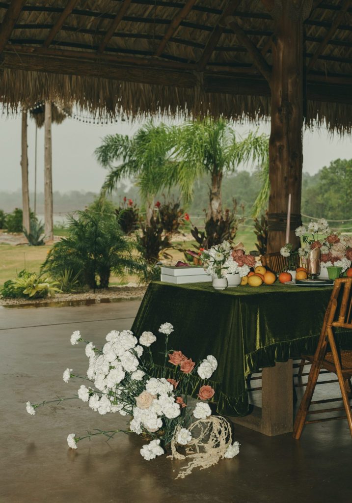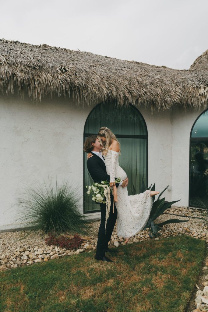 These moody, captivating photos by Jen Jetzer Photo transport us to what appears to be a dreamy resort in Mexico. But surprise – this tropical paradise is actually Three Bells Mission in Wallis, Texas! You don’t need a passport for a picture-perfect tropical wedding. Three Bells Mission brings the allure of a destination celebration right to Texas.