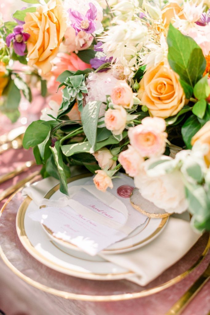 From the planner: “Tickled Pink I Do’s was designed for the bride that isn’t scared to show off her soft feminine side. She is confident in her love for pink and wants her day to reflect her style in every detail. Drawing inspiration from the different shades of pink peonies you might find in your garden, we wanted to have just the right amount of color pop in every element of the day. With this gorgeous venue as the backdrop it was easy to create an elegant outdoor setting that any wedding guest would gush over for years to come.”