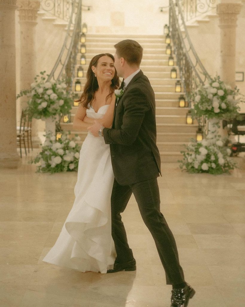 Nicole + Bryan’s winter wedding at The Bell Tower on 34th was nothing short of perfection, filled with vibrant moments both intimate and grand. The bride’s stunning dress and intricate veil from Brickhouse Bridal beautifully complemented her chic and natural hair and makeup!