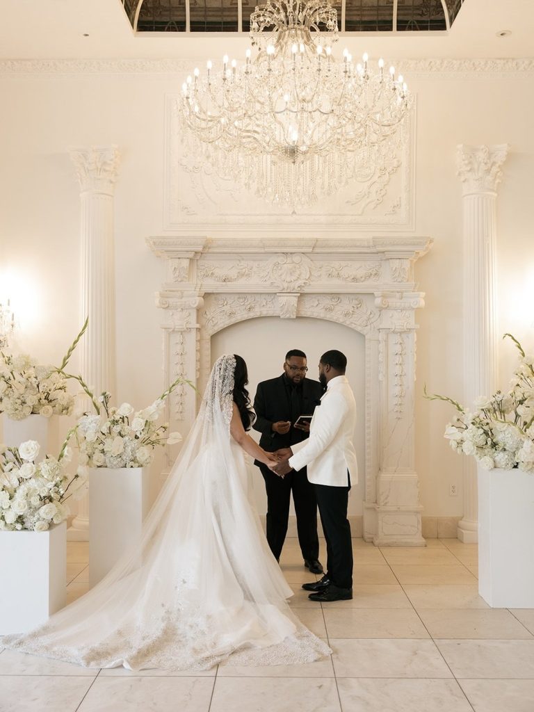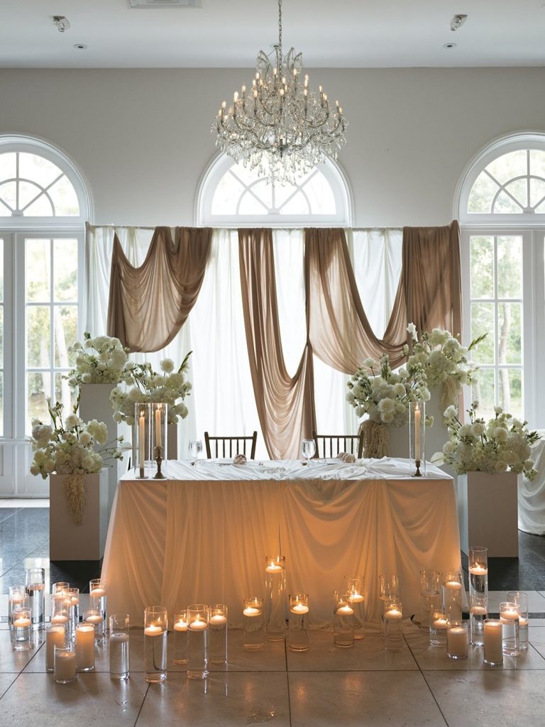 The Tiffany Effect brought this vision to life with soft, neutral draping, a glowing candlelit aisle, mirrored accents, and elegant, vintage-inspired details that transformed Chateau Nouvelle into a classic love story!⁠