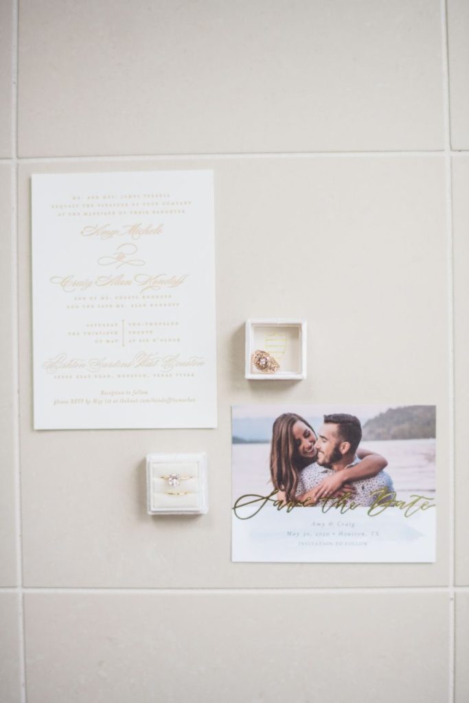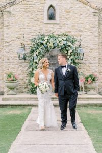 This classic and timeless spring wedding is giving us all the inspo! With the couple’s white and gold color scheme, they nailed the timeless look. Amy and Craig met in college but didn’t start dating until after they graduated. However, they both always knew there was something there. After dating for a few years, Craig proposed to Amy with a romantic beachfront picnic! With having to move their wedding due to the Covid pandemic, they still got to have their magical day to celebrate their love with their friends and family. The couple spent the morning getting ready with their bridal parties on the wedding day, where Amy got dressed in her beautiful lace, sheath Martina Liana gown from Brickhouse Bridal, and Craig dressed in a blue suit from Generation Tux. After getting ready, the couple shared an intimate “first touch” where they prayed for their future lives together. The bride said of saving the first look for the walk down the aisle, “there is nothing like that first look feeling.” Their gorgeous indoor ceremony and reception were held at Ashton Gardens | West Houston. After their ceremony, the couple took advantage of their time at sunset and captured the most beautiful portraits with their photographer, April Mae Creative. The reception was filled with dancing, speeches, and even the Aggie War Hymn. The newlyweds ended the night with the most memorable moment of their day – a private last dance. Sharing such a romantic and intimate moment together after the craziness of planning a wedding and experiencing a that day was just what the couple needed. The couple drove off in a red 1965 Ford Mustang. Check out some photos from their romantic day below! Cheers, Mrs. and Mr. Kondoff!