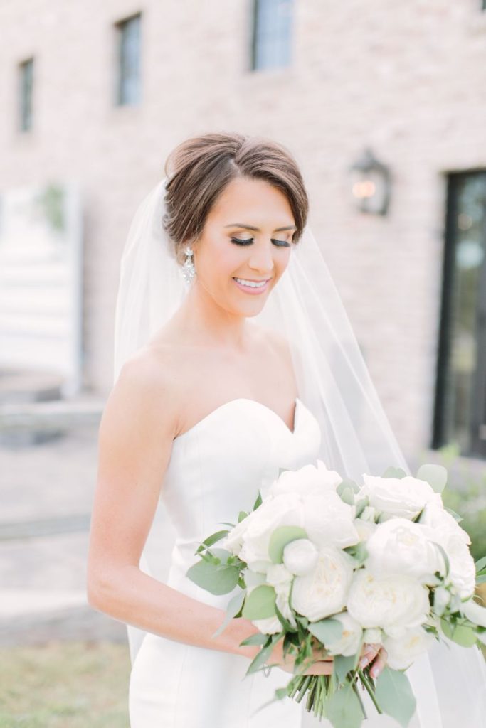 Featuring both rustic and traditional glam elements, this elegant barn wedding planned by Rachel Johnson of Two Be Wed has the best of both worlds! Stephanie and Sean tied the knot in a romantic outdoor ceremony and a lushly decorated reception in the rustic wooden barn where they chose to start their forever. Stephanie is the most beautiful bride in a chic, form-fitting Brickhouse Bridal gown featuring a strapless neckline that was pretty much made for her, as well as an oh-so-elegant royal length veil. Cakes by Gina went above and beyond in the sweets category, and we can’t stop staring at their five-tiered floral-adorned dream of a wedding cake, or the ski-slope inspired groom’s cake that added a fun touch and showed off more of Stephanie and Sean’s personality. Between all of the stunning details and sentimental moments, this elegant wedding in Houston was captured beautifully on film by Reverent Wedding Films and on camera by Mustard Seed Photography. Read on for a note from the bride about one of her favorite wedding vendors and about what made them so great. Cheers to Stephanie and Sean!
