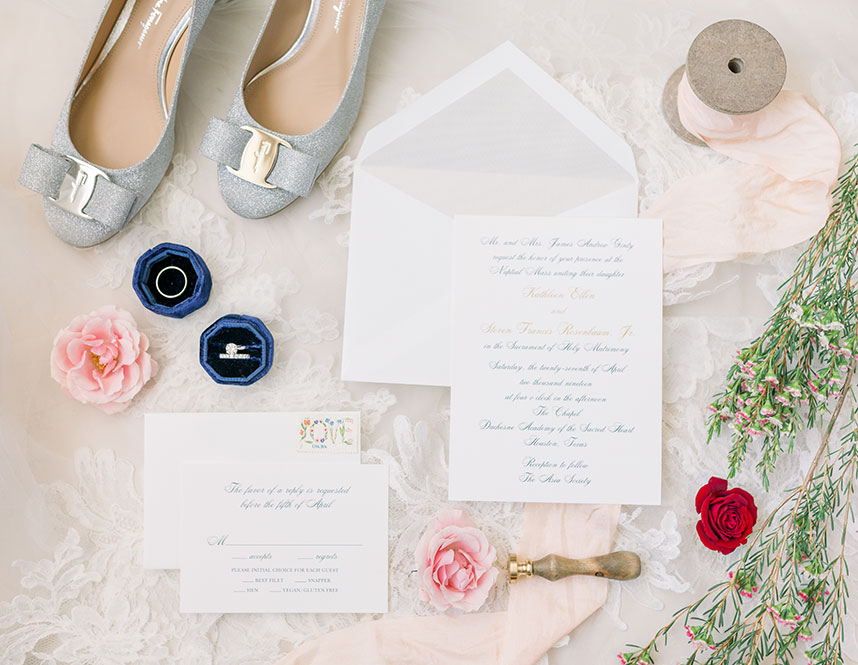 Houston wedding photographer Sara Abdulaziz captured so many beautiful photos from Kathleen Ginty and Steven Rosenbaum’s traditional spring wedding, and you’ve got to see the striking color palette of navy and crimson accented with blush and creams – it’s seriously pretty! Cheers to the happy couple!