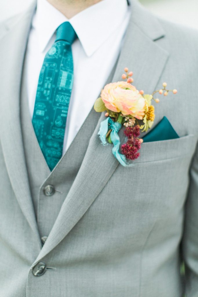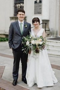 From the bride: “We both chose to exchange wedding bands that meant something to us. Douglas’s father passed down his old wedding ring to Douglas, and my grandmother gave me my grandfather’s.”