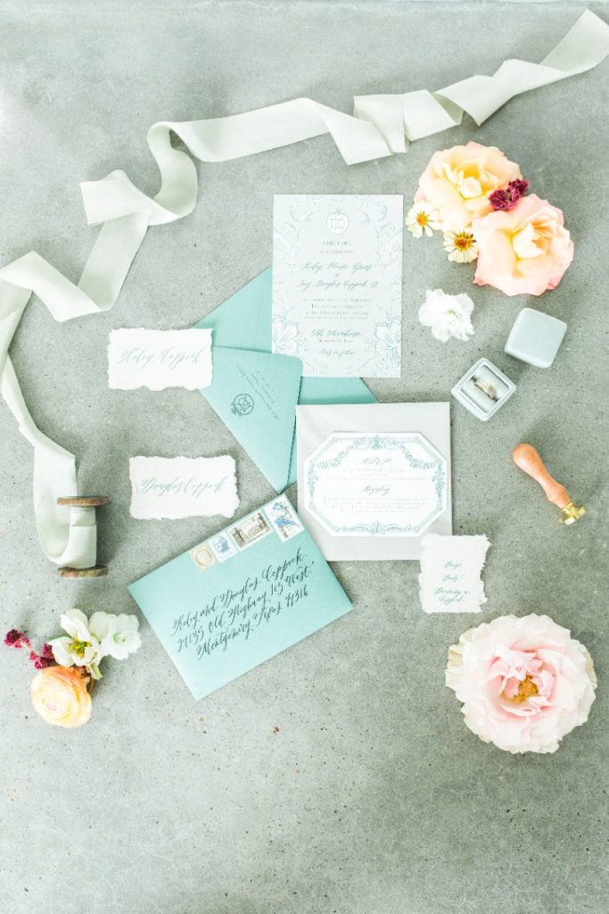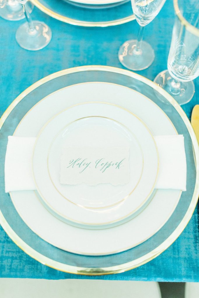 Oh how we love this color palette! Kaley and Douglas’ turquoise and peach Houston wedding was beautifully designed and produced by the planners at Tammy’s Table and we love the crisp bold colors and clean lines of the design. Half Moon Lettering did the custom invitations and calligraphy, and how about those braids and curls from Blushworthy? So pretty! Cheers to Kaley and Douglas!