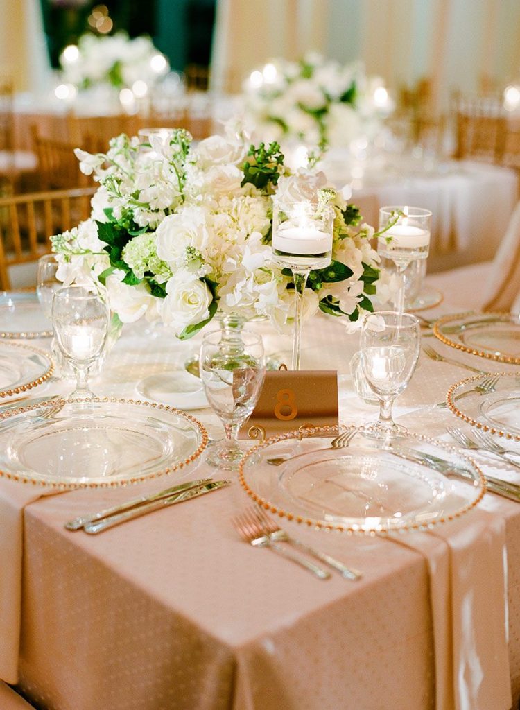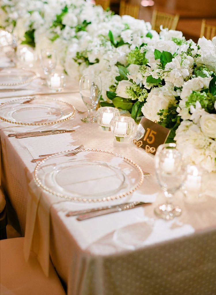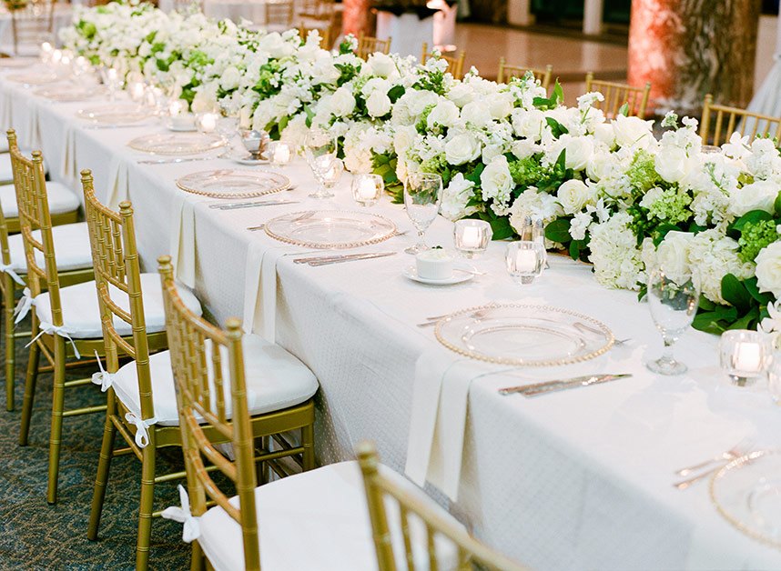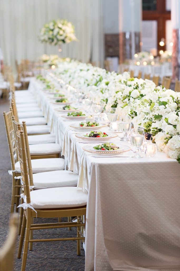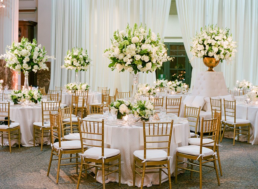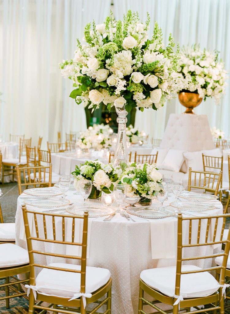 Every luxe detail from Katie and Will’s emerald green Union Station Houston wedding has us swooning! Planned by the incredible Keely Thorne Events, the couple’s ballpark wedding went off without a hitch. Kelli Durham Photography set to work capturing every extravagant scene filled with towering white florals by Blooming Gallery, boxwood hedge walls and stylish furniture rentals. Bride Katie looked incredibly stunning in her Vera Wang ball gown from Casa De Novia with an Old Hollywood inspired beauty look from The Styling Stewardess. The bridesmaids’ gowns from Bella Bridesmaids truly brought the color scheme to life with their vibrant emerald shine standing next to the couple as they said their vows. The celebrations continued into the evening as guests enjoyed cake sliced from the most incredible sugar flower-adorned cake by Who Made the Cake and danced the night away.