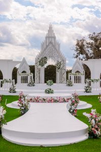 Forever 5 offers a rare blend of indoor and outdoor spaces starting with its modern reception space. Taking inspiration from greenhouses with floor to ceiling windows, it sits on a one-acre pond bringing the outdoors inside in a fresh new way. Match that with its one-of-a-kind ceremony area boasting weeping willows and four 24′ tall hand-built arches covered in wisteria, your wedding is sure to rival those of storybook romances! What makes this wedding venue unique? Its incredible open-air outdoor ceremony space, coupled with the lush, natural scenery!