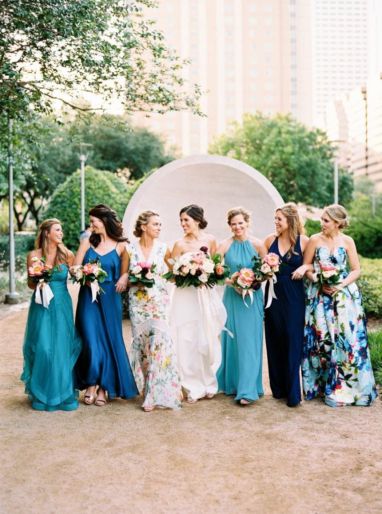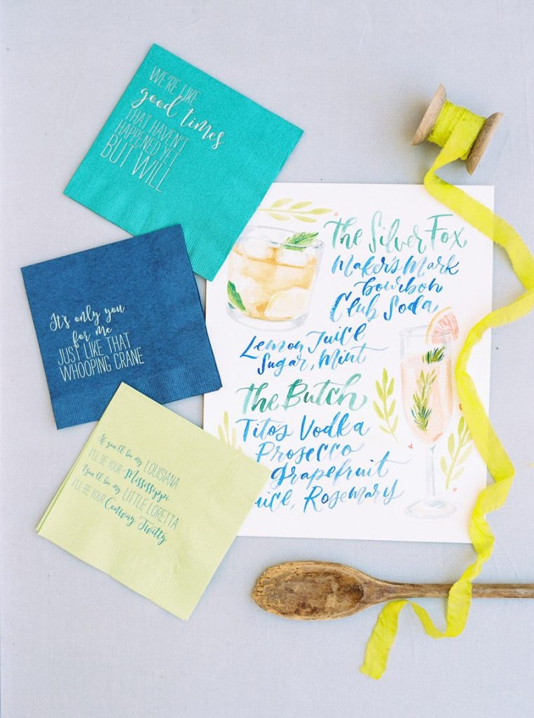 Meghan and Jacque’s vibrant watercolor wedding, planned by Two Be Wed, is one we won’t soon forget! With bold colors and hand-painted details throughout, from the invitation suite to the bridesmaids’ dresses, cocktail hour signage and everything in between, each and every bright and colorful touch added whimsy and fun to their day. Mallory of Two Be Wed made sure the ceremony hosted at downtown Houston’s Discovery Green Park went off without a hitch. Meghan loved that Mallory was full of great ideas throughout the planning process, too! The couple greeted guests upon their arrival with a unique welcome gift full of goodies representing their personalities, and the personal touches didn’t stop there! Individually chosen bridesmaids’ dresses in hues of teal and blue, special cocktails and beautifully designed lounge areas in the reception tent gave this sweet soirée a feeling all its own. With bold florals from Bramble & Bee and a knock-out gown from Casa de Novia, the bride looked stunning, from the first look to the last kiss! Cheers to the happy couple!