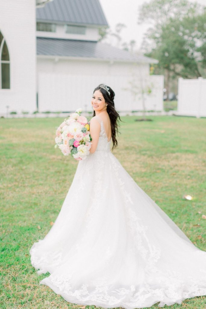 Josbenny and Alex wanted their wedding day to be tailored to represent themselves, their love for one another and their faith, and we think their vintage blush wedding is the perfect embodiment of just that! To start of their wedding day, this sweet couple’s first look consisted of a beautiful and sentimental feet washing ceremony, which was an expression of servitude and humility that they wished to carry over into the rest of their marriage – and it ended up being Josbenny’s favorite memory from their day (scroll to read this moment from the bride herself)! Lovely vintage decor pieces from Oliver and Penelope Vintage Rentals created the ultimate vintage aesthetic for this romantic scene and truly made the bride’s dream vision become reality. Grey linens, gold chargers and light blush napkins along with bold pops of fuchsia in their darling blooms work in perfect harmony with the soft rustic space for their reception, as every delicate detail combined to be more than this couple could have ever dreamed. Scroll to see all the vintage details in this blush wedding and to see the bride’s favorite moment, all featured below! Cheers to Mr. and Mrs. Rodriguez!