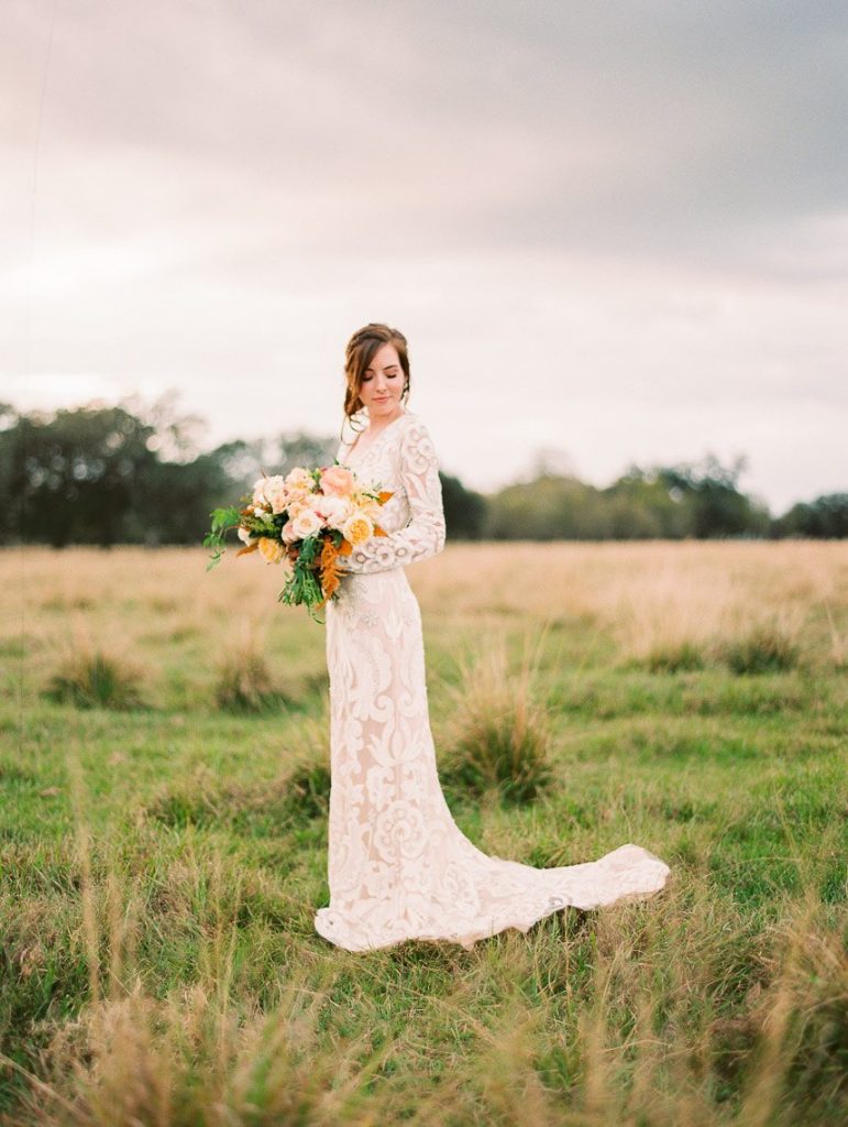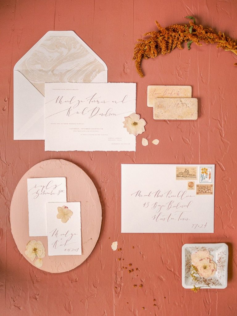 From the photographer: “The ‘Rose and Rust’ editorial from the Life & Craft Workshop (a workshop for photographers held on Luke & Cat’s ranch near Houston) combined the talents of Texas wedding industry creatives to create a fine art styled shoot full of terra cotta tones.”