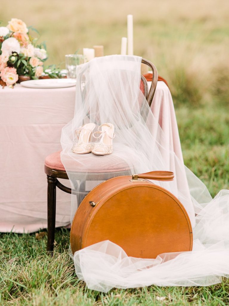 When multiple talented vendors come together for a styled shoot, magic can happen, and this vintage rustic wedding inspiration captured by Luke & Cat is no different! Inspired by earth tones, terra cotta and peachy pink hues, the team brought to life an incredible scene reminiscent of a classic southern homestead affair. Birds of a Feather planned and designed the shoot to perfection while Flower Vibes put together amazing florals and bouquets, joining lush blooms in warm tones with wood textures, rusty mauve backdrops, mercury glass and rose gold touches to tie everything together beautifully. Even smaller details made a big statement, including vintage jewels, antique leather luggage and an impeccably calligraphed invitation suite. Two things we can’t get over: the super unique seating chart and the lace on the bride’s dress! Absolutely stunning inspirational pieces. Southern brides, take notes!