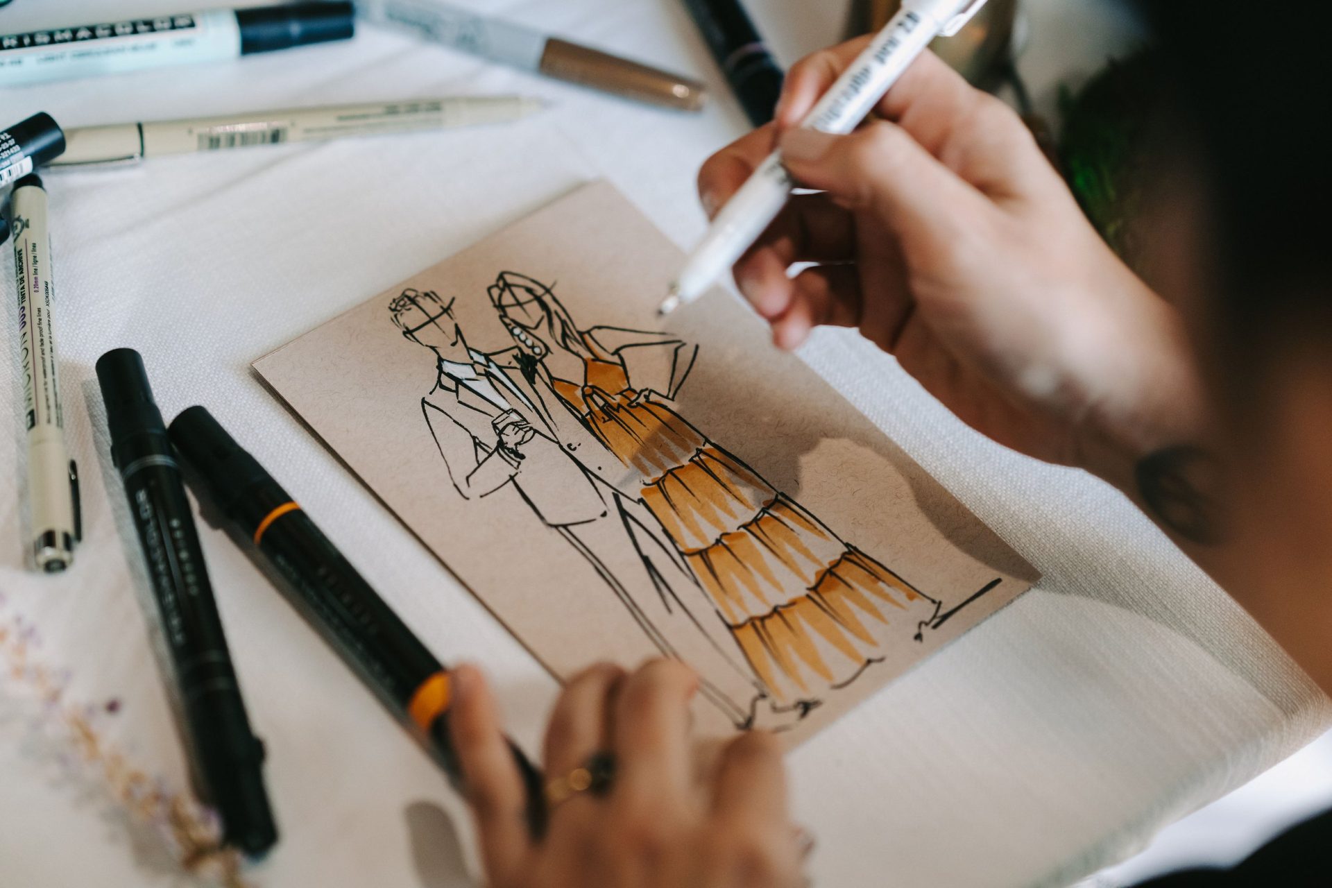 If you’re looking for a fun and unique experiential event for your wedding day, Vogue Vignette (VV) is calling your name. Perfect for the bride who loves fashion, VV is made up of a team of artists who will sketch live portraits of your guests in a high fashion style.