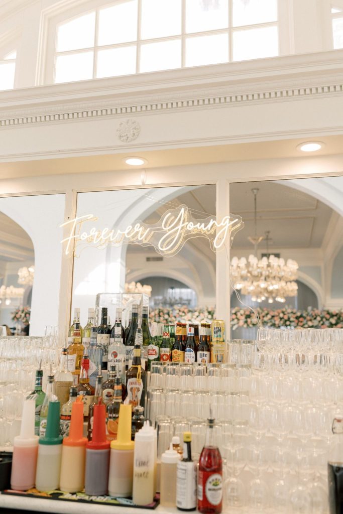 What truly set Avery and Matthew’s wedding apart were the meaningful personal touches woven throughout their celebration. Their beloved golden retrievers, Maggie and Willow, were featured prominently – from participating in the ceremony and photos to being highlighted on invitations, signature drink signage, and even custom place cards for guests.