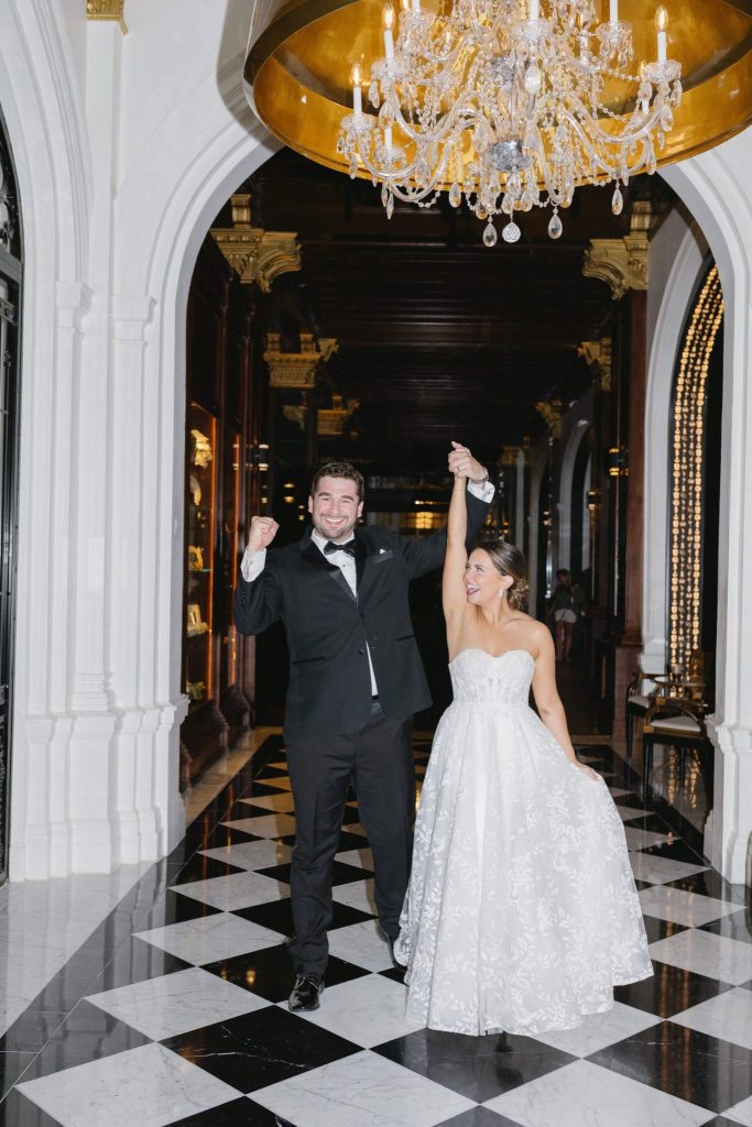 “Before the ceremony, my parents, Matthew’s parents, and his godfather blessed the rings together,” Avery recalls. “We pinned everyone’s wedding bands to a safety pin and attached it to my bridal bouquet so I got to walk down with everyone’s wedding bands. This was extremely special since my mom started this tradition at my sister’s wedding and wanted to do it for mine.”
