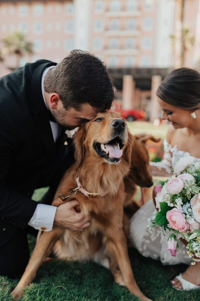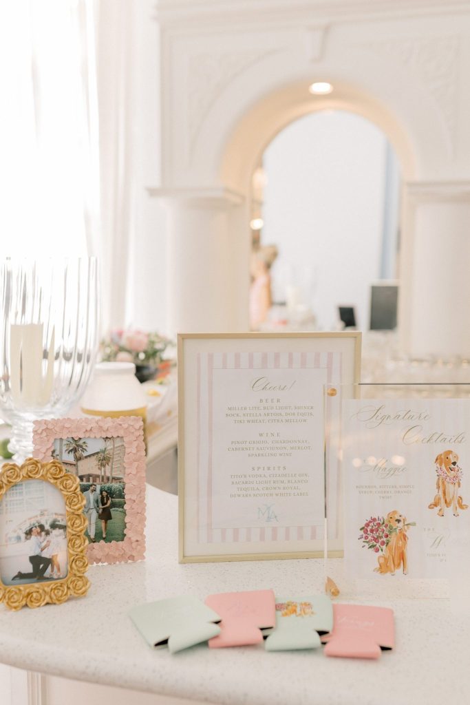 “We got to have our 2 golden retrievers, Maggie & Willow apart of our ceremony and to take photos with,” Avery shares. “They were a big design element being on our invites, signature drink signage, and name place cards.”
