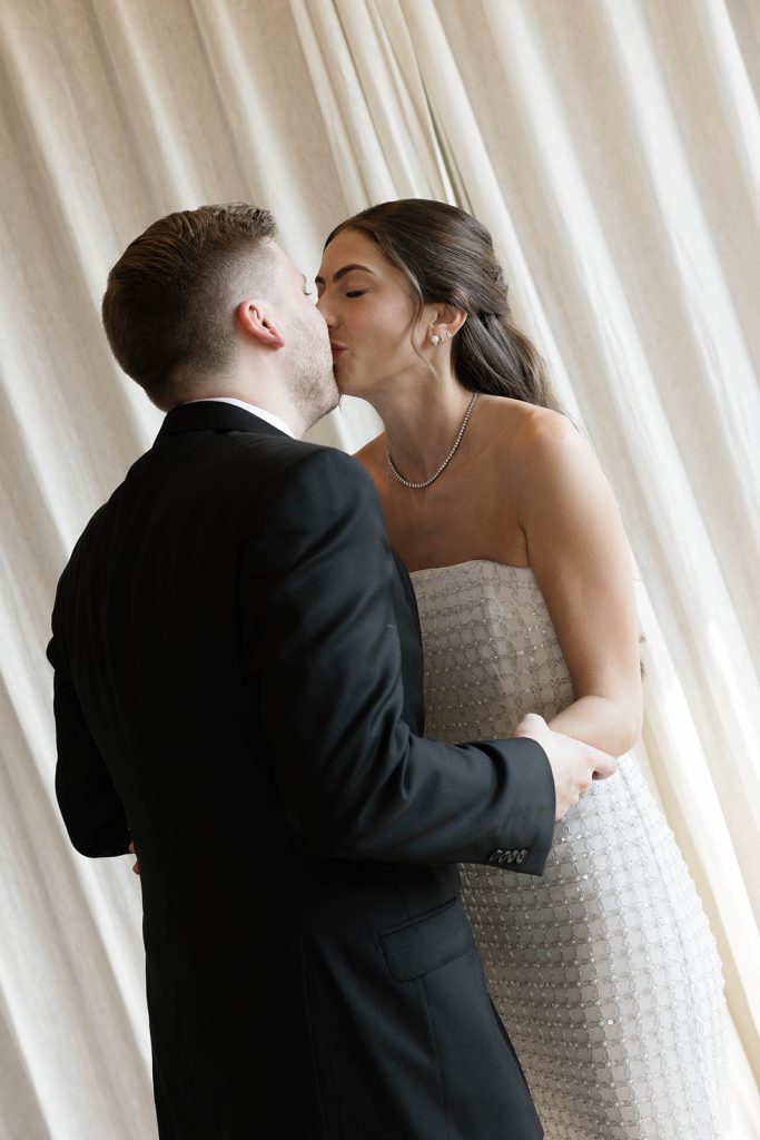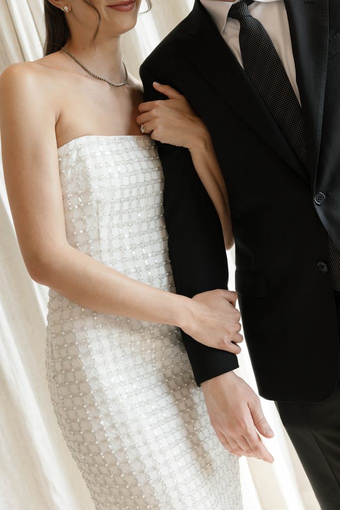 Avery looked timeless in a structured strapless gown with subtle texture throughout, paired with soft, polished glam by Etoilly Artistry. Her look felt clean and refined, letting the details of the dress and her natural beauty take center stage.