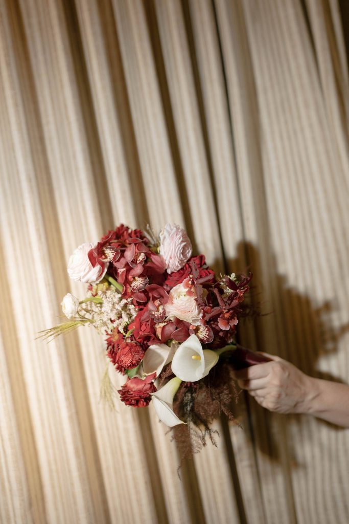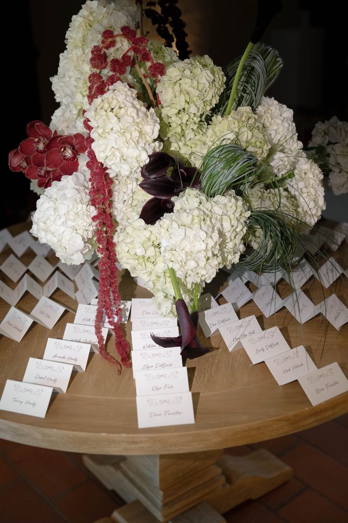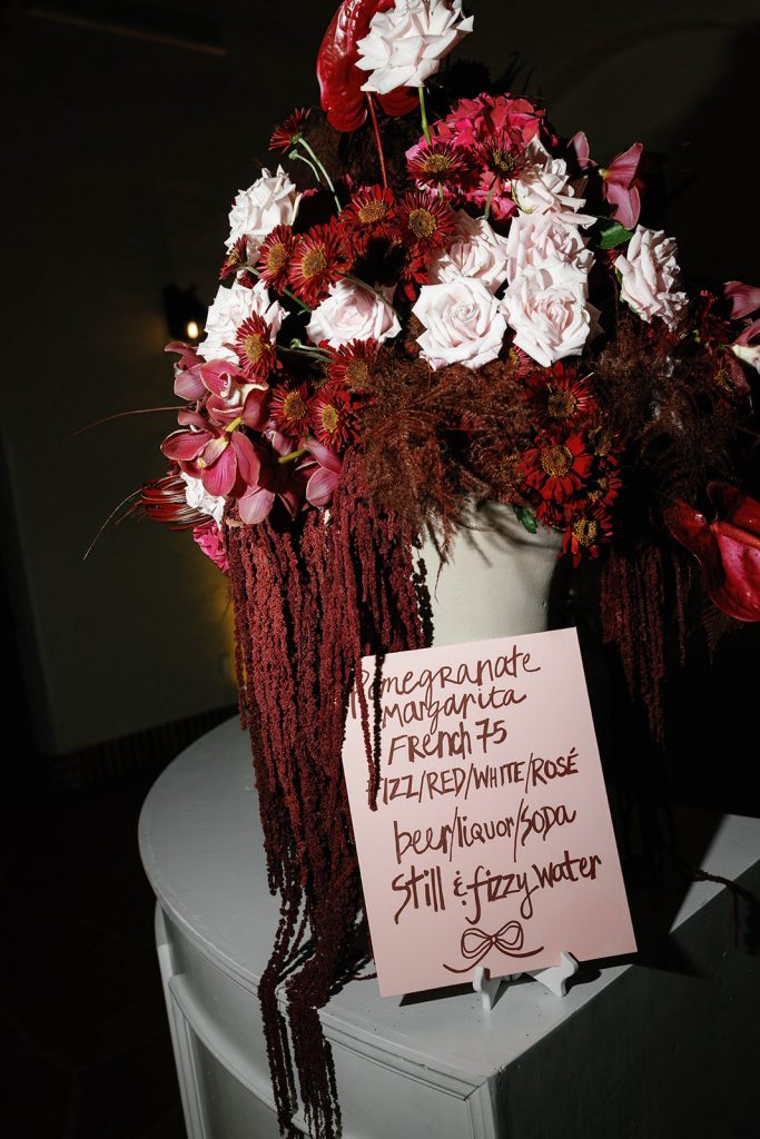 Florals by Amor Del Bueno Flowers continued throughout the reception, mixing creamy neutrals with deeper, moodier tones for a look that felt both fresh and dimensional. From the statement bar arrangements to the layered centerpieces, every floral moment felt intentional without being overdone.