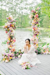 Romance and whimsy play hand-in-hand with the deconstructed wedding arch trend! If a traditional wedding arch seems a little too stiff to suit your ceremony, “broken” floral design might be just the move. We’re obsessed with the way this one is surrounded by even more florals at its base!