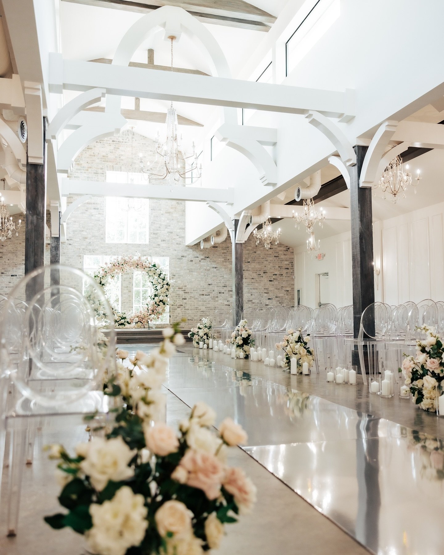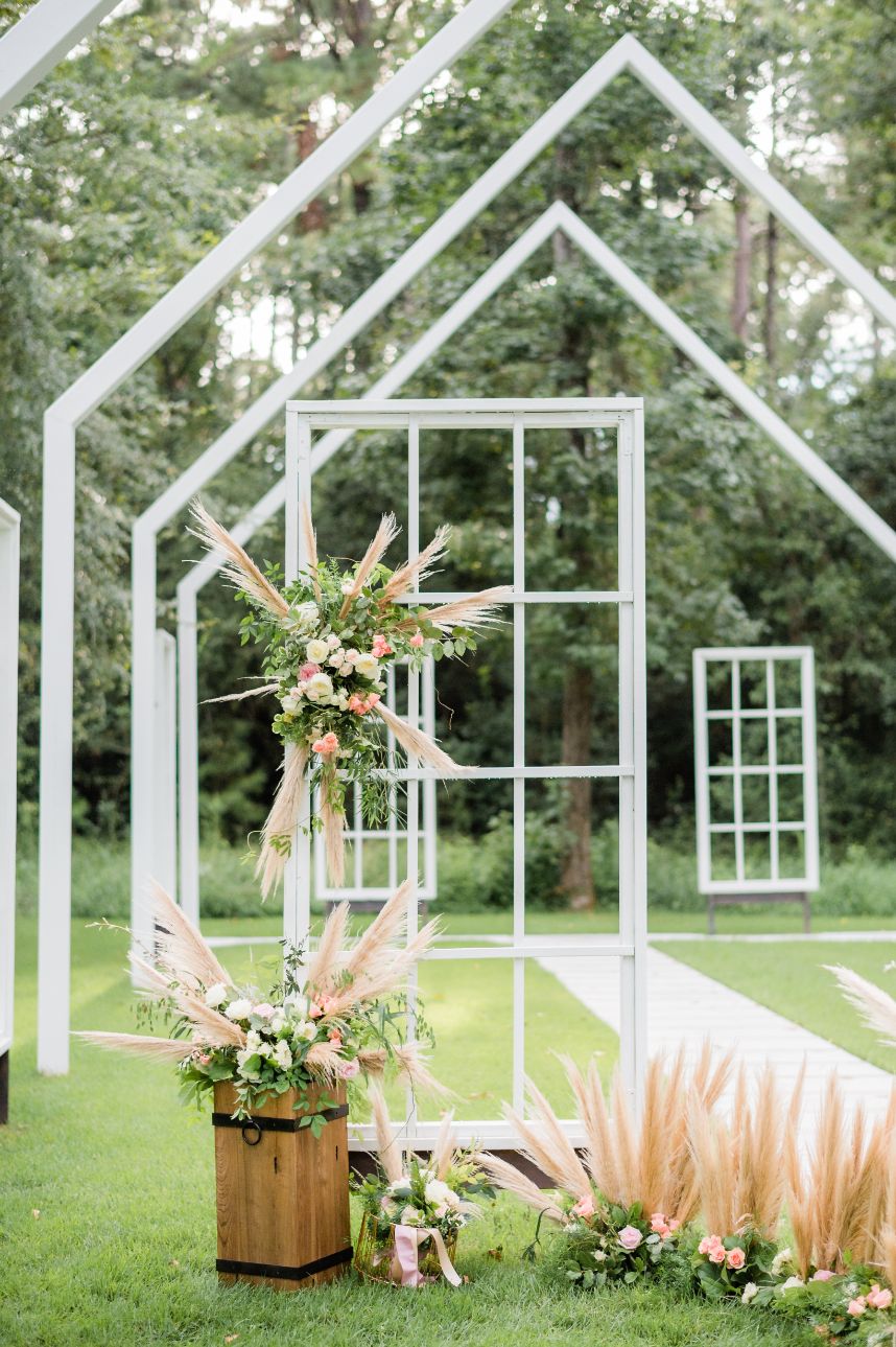 Typically filled to the brim with pampas grass and other dried floral design, boho wedding arch flowers will always have a special spot in our hearts. Throw in some Moroccan rugs and vintage decor and then you have a cozy boho ceremony space that has edges as wild and free-spirited as your own.
