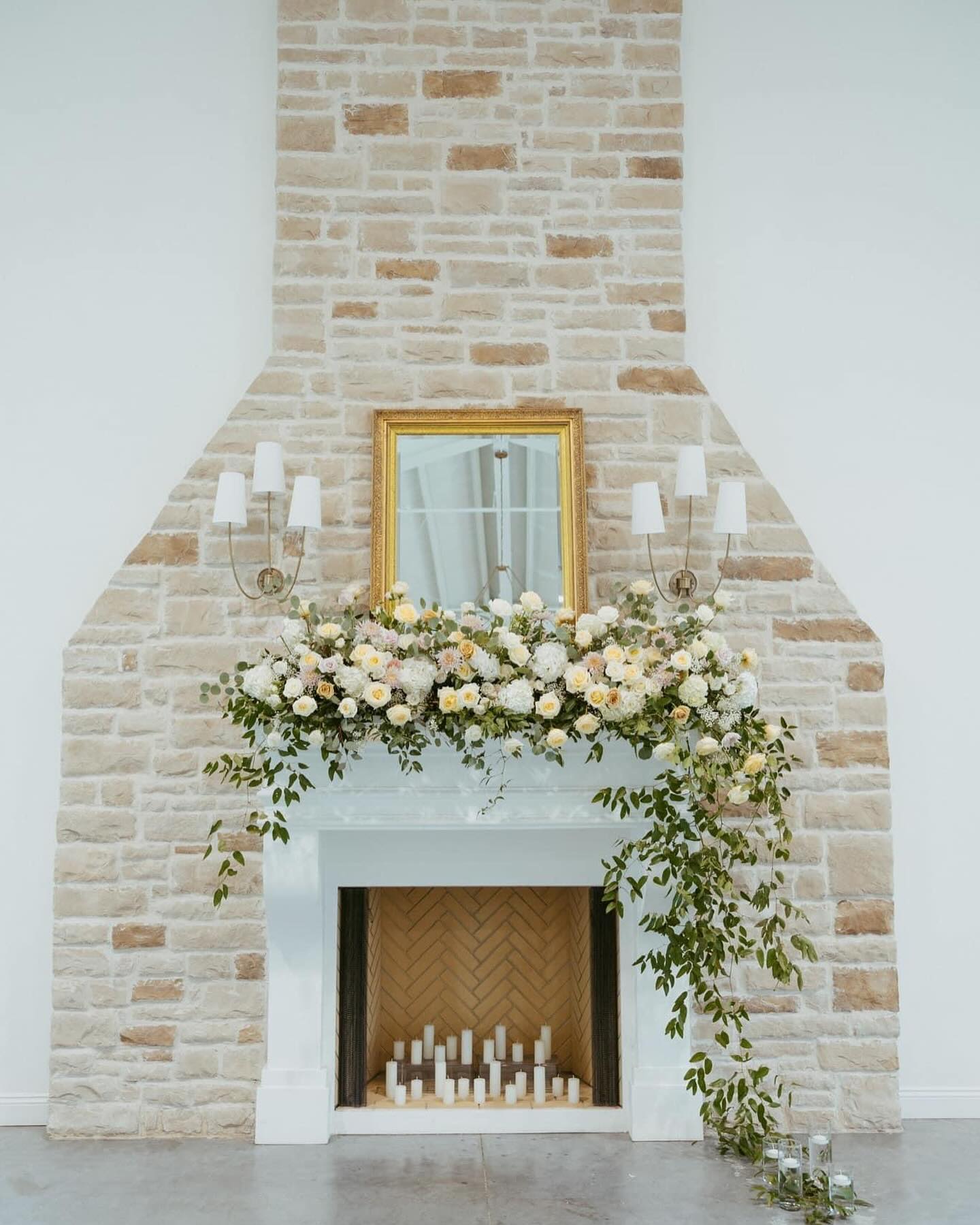 Perfect for cooler months or intimate venues, a fireplace floral arch is a stunning choice that adds both intimacy and grandeur to your ceremony or reception. Imagine lush blooms and greenery elegantly draped over the mantle, framing the hearth with natural beauty and romantic flair. This enchanting focal point not only elevates your décor but also creates a warm, inviting ambiance.