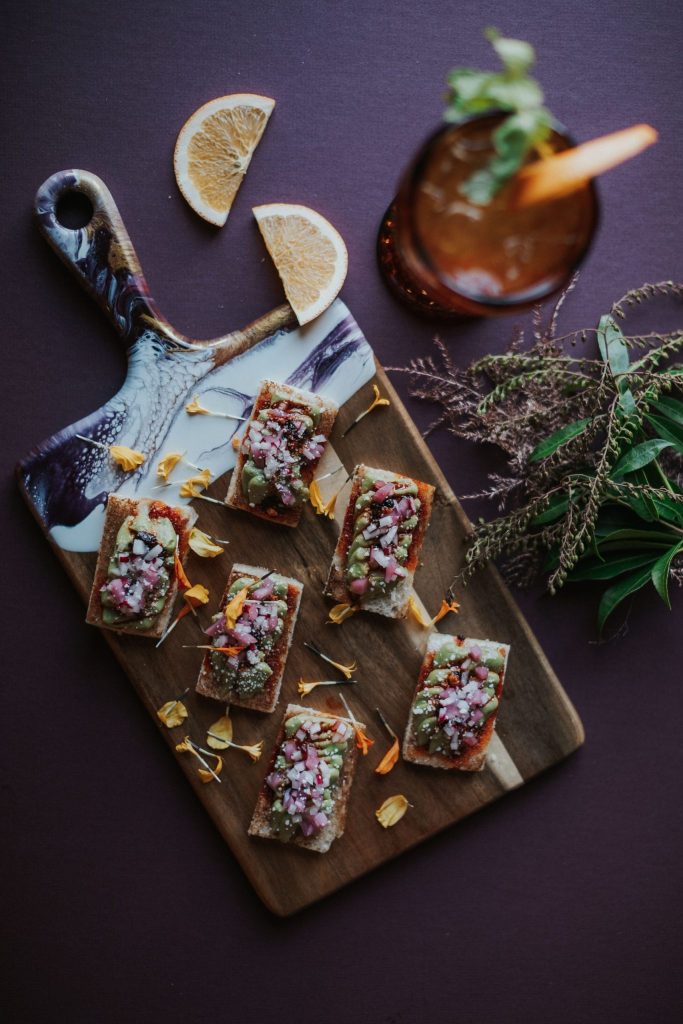 Grazing boards: charcuterie boards have been taken to a whole new level with these massive grazing boards serving dozens upon dozens of delectable snacks. Your guests will love perusing the giant board and picking out their favorites for a custom snack plate!