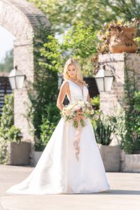 Weddings at historical locations have such a sense of romance — and this Spanish villa wedding inspiration at The Parador is no exception! This nearly 100-year-old venue is located in Houston’s museum district and is full of idyllic little wedding spots nestled around the grounds. No old-world style setting would be complete without rich textures and floral details, and that’s exactly what Edible Designs created in their elaborately designed cake, which reflects the intricate lace pattern of the model bride’s stunning gown from Love & Lace Bridal Boutique. Her loosely swept updo from Callie Elizabeth Hair and dramatic eyes from Blushworthy give this bride the look of a timeless beauty. Bering’s simple, yet fanciful invitation suite perfectly introduces the floral themes that Lanson B. Jones & Co. Floral and Events delivers in the stunning bouquet and table arrangements. Enjoy all the romantic inspiration!