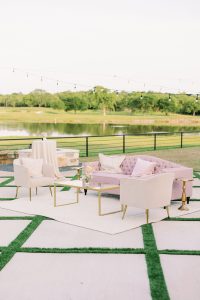 Think couches, chairs, ottomans, poufs, coffee tables, and side tables. Lounge areas give your guests a designated space to relax, mingle, sip cocktails and take it all in! Be sure to accommodate for any necessary or upgraded chairs + tables (dining tables, cocktail tables, dessert tables) not included by your venue.