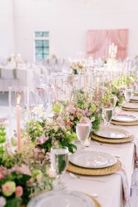 When designing your wedding, you’ll want to rent items like china, chargers, plates, flatware, glassware – this is where you can mix and match in your dream color scheme to create the perfect, inviting spot to make each and every guest feel special!