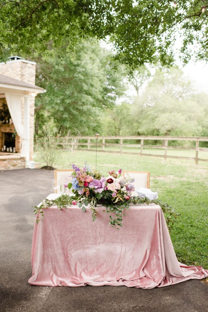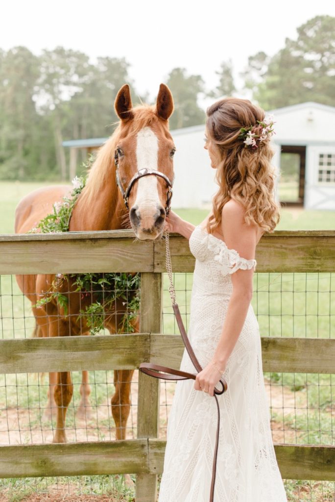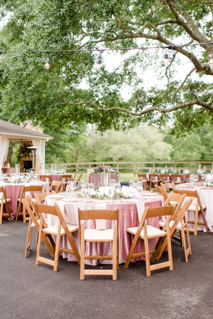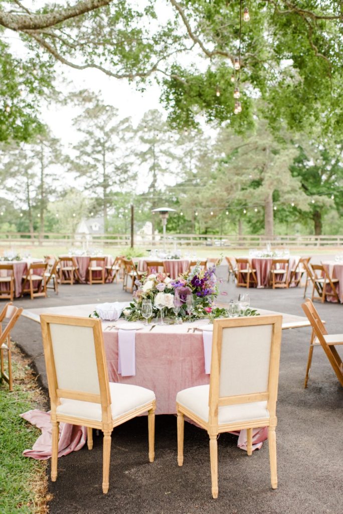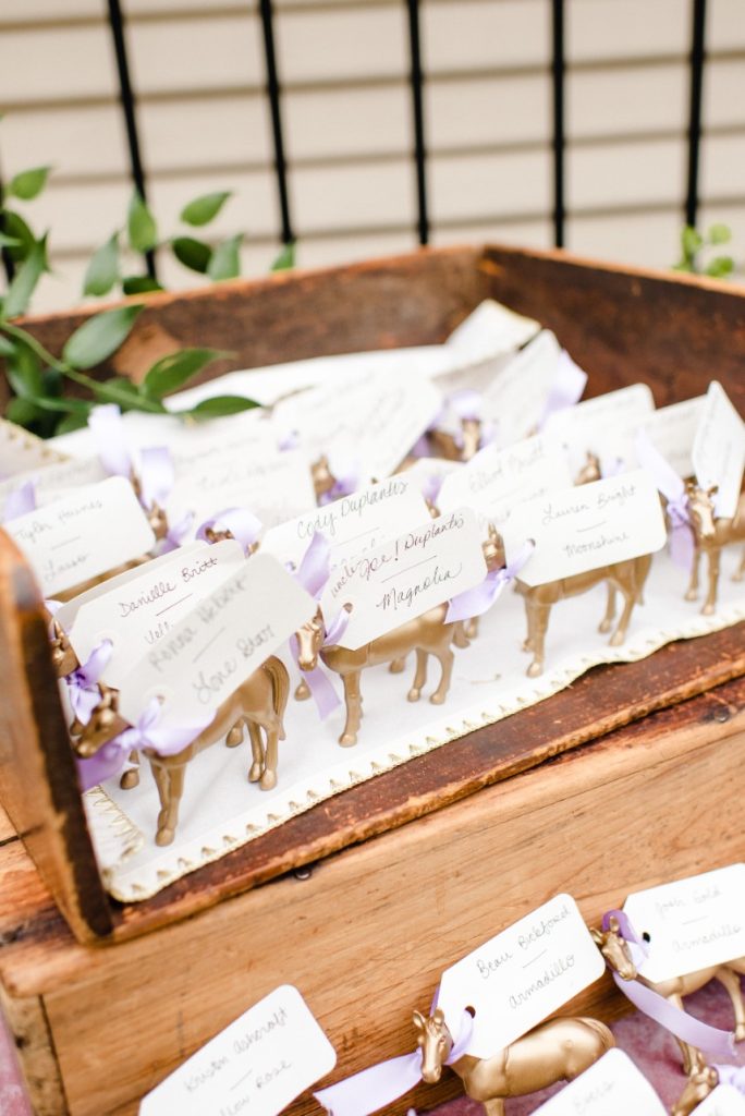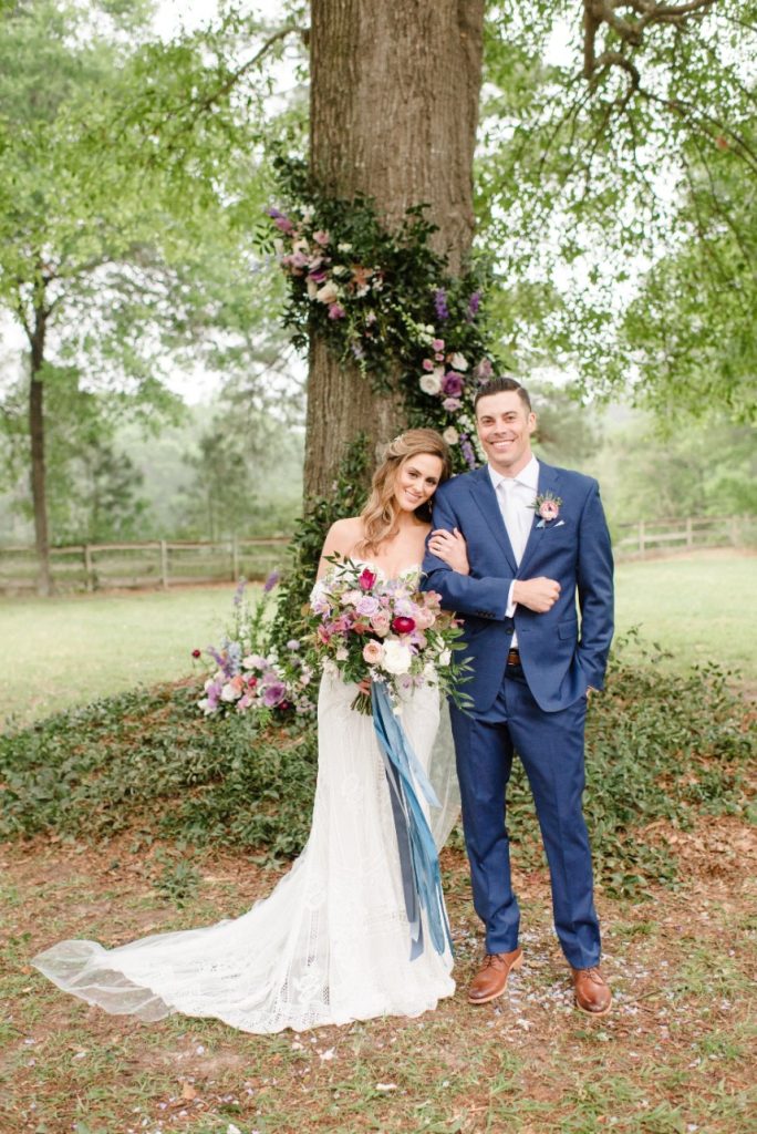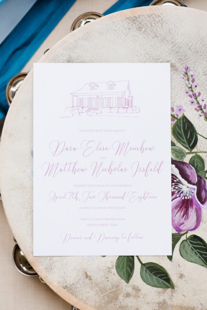 Dara and Matt’s whimsical bohemian wedding at a private family home outside Houston was filled with so many special touches like gorgeous custom painted tambourines for the bridesmaids and a cigar and scotch bar for the guys! Dara’s bridal look was perfect with beautifully natural hair and makeup by Blushworthy. Did we mention how obsessed we are with Dara’s custom denim jacket?! The colorful flowers by Flora & Fauna covered the ceremony tree and lined the tabletops in a refreshing palette of dusty blues, pinks and mauves, and the team at LG Event Entertainment and Production kept the party going! Cheers to Dara and Matt and thanks to Houston wedding photographer Kati Hewitt for capturing all the loveliness!