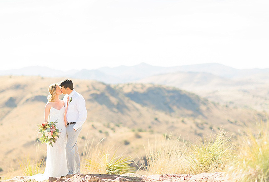 When Lean On Me Events was tasked with designing an anniversary photo session for Tawny and Jerad, she set to work bringing our colorful wedding inspo dreams to life with this whimsical desert anniversary shoot! Set in the mountainous landscape of Marfa, Texas, this couple’s two-year milestone was encapsulated with the dreamiest, sunkissed photography by The Cotton Collective. Tawny was dressed for the occasion in a boho, lace sheath gown from Lovely Bride along with complementing braided ‘do and gemstone-esque jewelry. Drawing inspiration from the desert setting, F. Dellit Designs used cactus, succulents and protea in her florals designs which adorned both Tawny’s bridal look and the tablescape that sat overlooking the rocky terrain. A Fine Flourish completed the place settings with terracotta place cards and added an illustrated cactus invitation suite that couldn’t have fit more perfectly with the setting. No celebration is complete without tasty treats, and Wink by Erica obliged with the most adorable mini unicorn cake and matching macarons! Perhaps our favorite detail, though, was the incredible balloon garland Cake and Confetti styled, making for a fun-filled prop and photo backdrop for Tawny and Jerad! Could this whimsical desert shoot be any cuter?! Happy Tuesday!