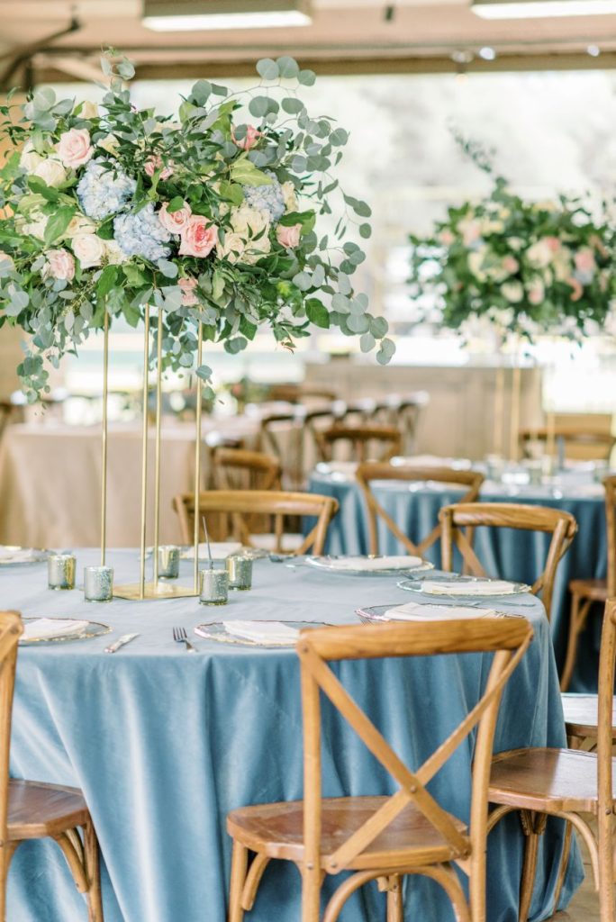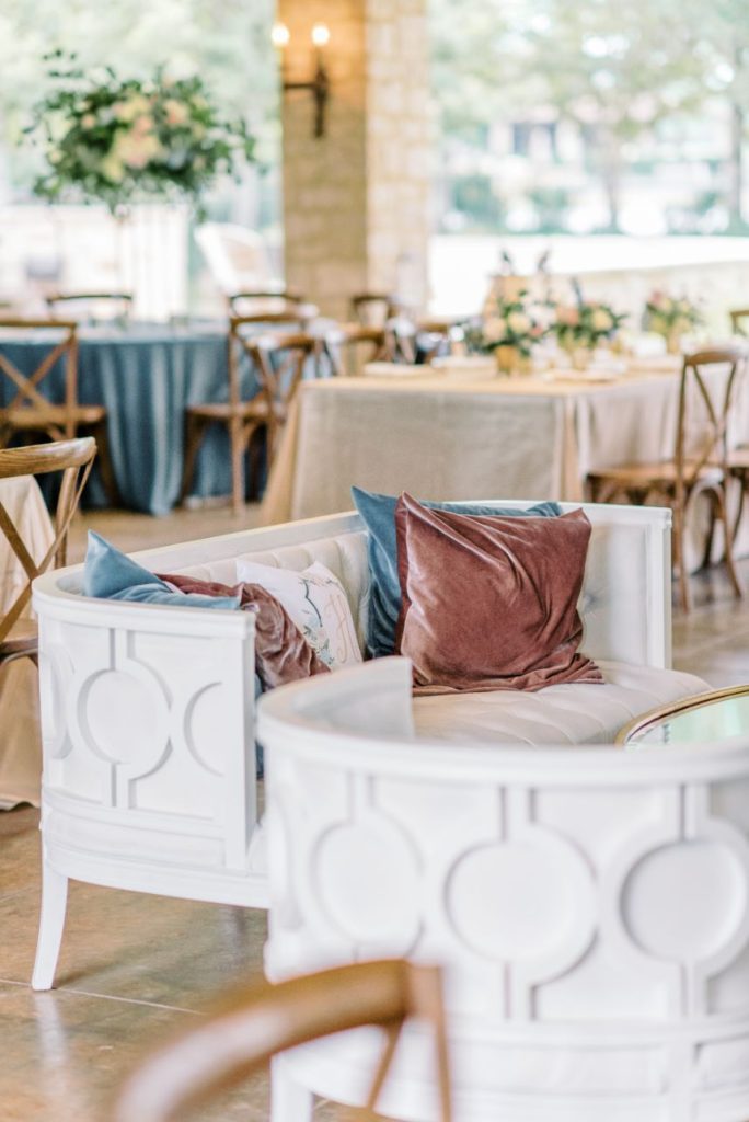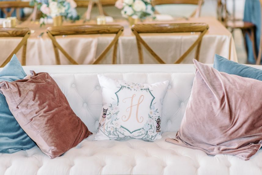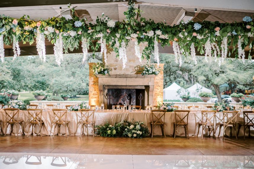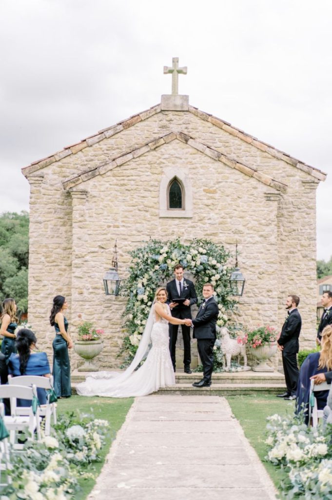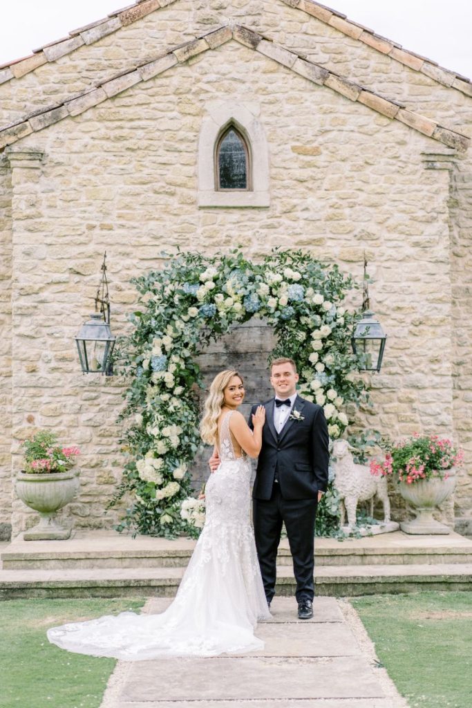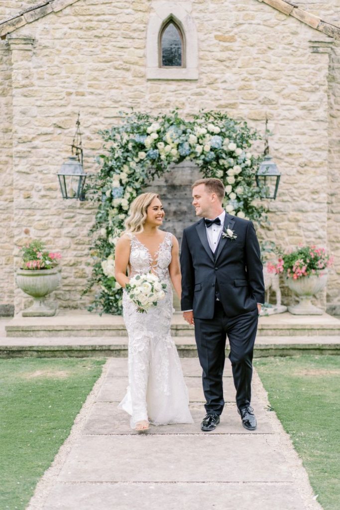 We feel like it was just yesterday when Christine and Garret were engaged in a classy faux-destination shoot and now, just as promised, the two have tied the knot in a dreamy garden wedding with French and Italian inspirations! Garret proposed to Christine while the two were on a romantic getaway to Paris, Venice, and Amsterdam so European elegance was bound to make its way into their summertime nuptials filled with greenery, ivory and blush florals flowers accented by pops of sweet blue French Gardenia. Two Be Wed coordinated the day, ensuring that everything went according to plan and helped to create the sense of magic and romance Christine wanted, while drawing from the 15th-century French chapel and the creative ceiling installation, greenery and tablescapes to showcase the theme of the wedding so perfectly captured by Alicia Yarrish Photography. Christine and Garret started their big day with an exchange of gifts – a bottle of Don Julio 1942 Tequila for him and perfume for her, both expertly glass-etched by She Made it Like That, LLC. Next came hair and makeup services by the artists at Etoilly Artistry who glammed up this bride and her best gals. Beautiful bride Christine looked radiant as ever in a trumpet silhouette trimmed with illusion lace details from Belle Âme Bridal with a back and train that immediately stole our hearts paired with a veil from Evoke: The Bridal Experience. As a wedding planner herself, she put so much thought and care into every step of planning her own garden wedding, but there were a few details that stuck out to her a little more. “My favorite wedding day memory is when Luke, our officiant from Officially Oaks, finally announced us as husband and wife,” says Christine. “There was a sense of relief, overjoyed, and excitement knowing that it’s finally official. Walking down that aisle, and seeing all our closest friends and family who have been there with us, was just beyond what words can express!” The rest of the evening went off without a hitch and thanks to their day-of coordinator, they didn’t have to worry about a thing besides being in love. Read on for a note from the bride about one of her favorite wedding vendors and what made them so helpful. Cheers to the Hohmans!