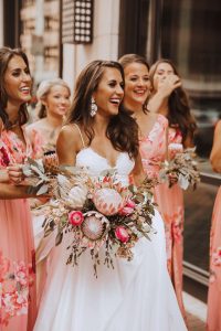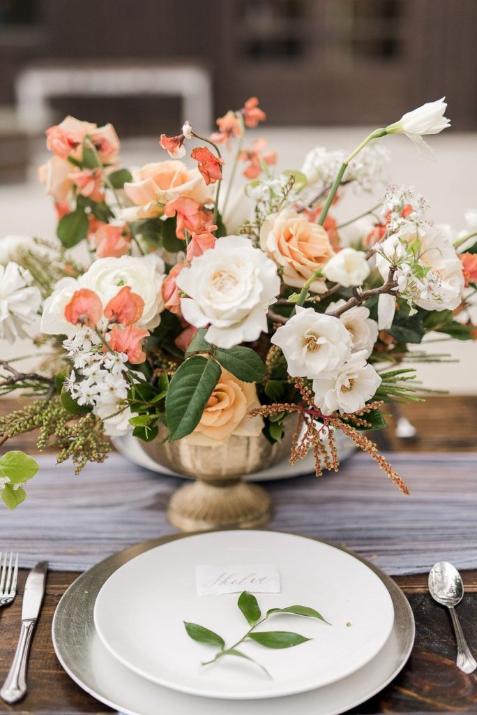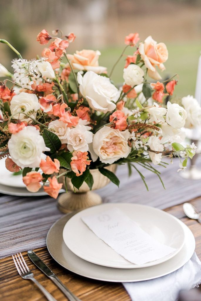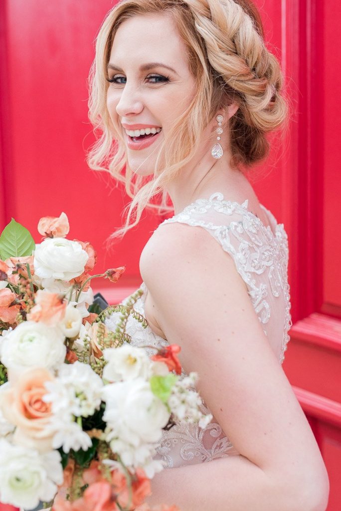 Happy Monday! We’ve got a treat for you in the form of this whimsical romantic styled shoot at The Carriage House, planned by Davis & Pogue Events and photographed by Half a Rice Studios! From the gorgeous natural light pouring in through the chapel windows to the tablescape evoking the wondrous moods of spring, this inspirational shoot has us swooning! We’re loving the model’s billowing boho braid by Etoilly Artistry, the crisp white invitation suite and the sweetly tied linens on the chairs. Every detail makes a statement! Simple greenery makes its way through the entire shoot as a unifying element, with a sprig at each place setting welcoming guests to their seat, and then as a crown atop the beautiful watercolor cake by Cakes by Gina. A cherry red chapel door adds a pop of colorful whimsy to a more muted palette, along with coral blooms from Gallery Flowers. With a backdrop like The Carriage House, it’s hard to go wrong no matter which theme inspires you! Cheers to springtime!