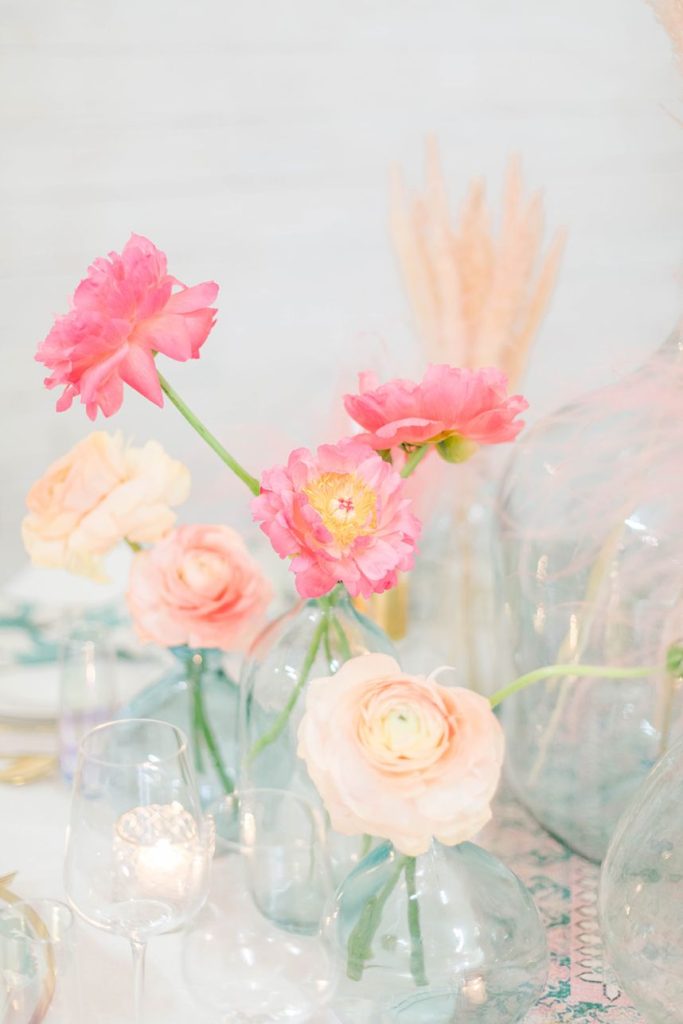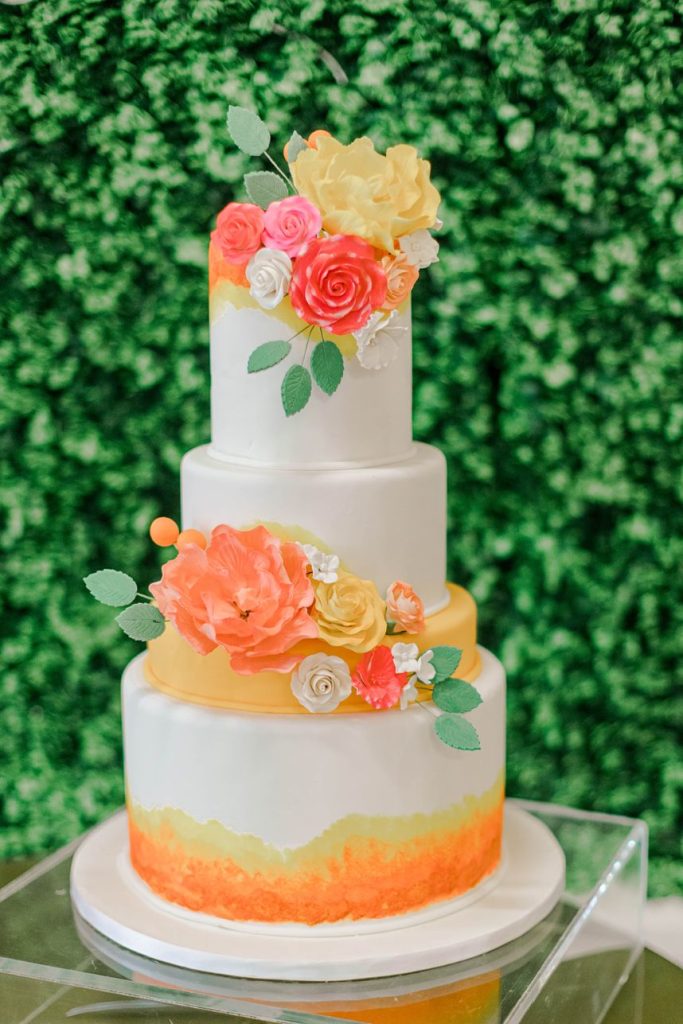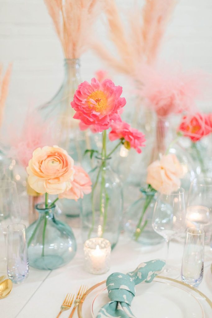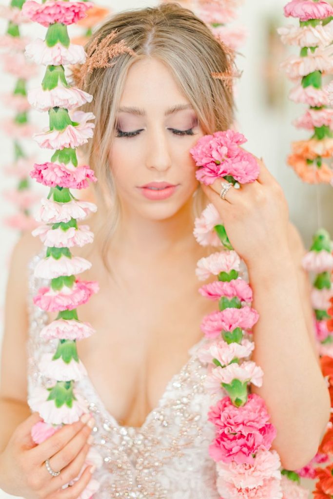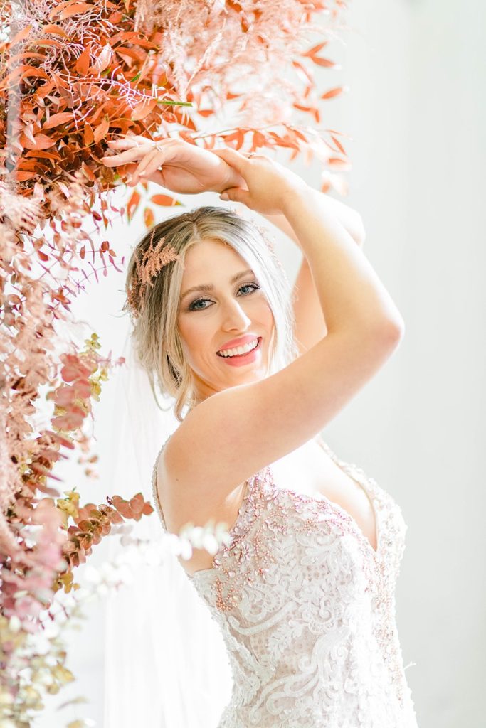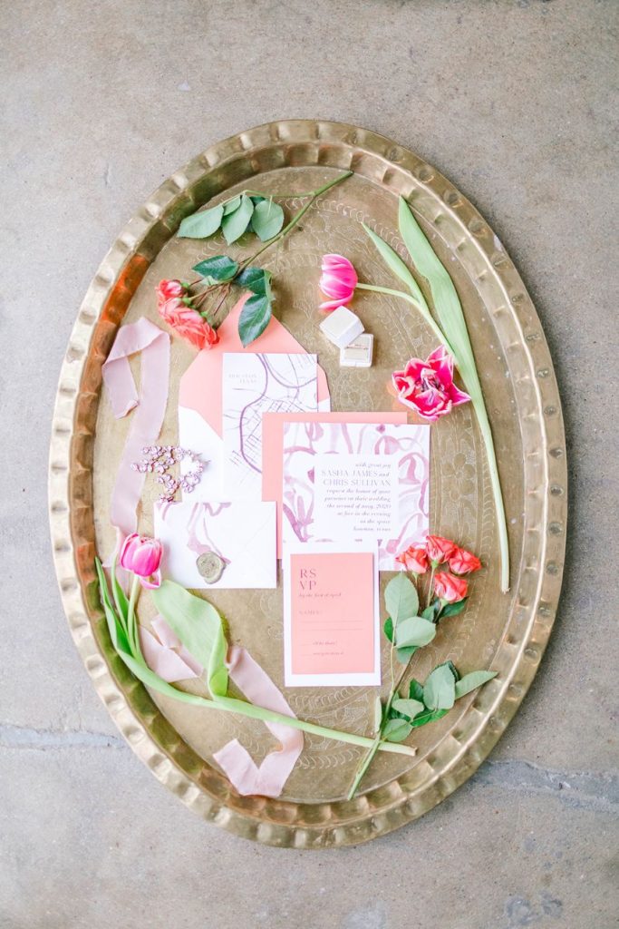 There’s nothing quite as fresh and fun as this whimsical wedding inspiration! Perfect for the bohemian bride or anyone who isn’t afraid to take the path less traveled, this styled shoot combines some of the sweetest vintage pieces and trendiest new rentals from Love Birds & Co. with so much romantic floral design to create a dream wedding scene in bold coral and peach shades. Half Moon Lettering has created an invitation suite that is just as bright and punchy as the rest of this big day, and we love the abstract watercolor design! Two models showcase jaw-dropping gowns from Brickhouse Bridal, both with gorgeous sweeping trains and intricate, feminine detail that is absolutely to-die-for! Both brides look flawless with hair and makeup artistry by Sunkissed and Made Up – pros at creating glowy and natural bridal looks that look straight off the red carpet. A carefully crafted, four-tiered wedding cake in shades of orange by Cakes by Gina has our mouths watering and also functions as the perfect statement décor in a room (until there’s none left)! Lighting, courtesy of LG Event Entertainment & Production, means that every shot in this gallery is a keeper, and all photos have the perfect balance of natural light and vivid color. For all its bright and fun elements, we just can’t get enough of this whimsical wedding inspiration that is absolutely perfect for the bohemian bride in your life. Cheers!