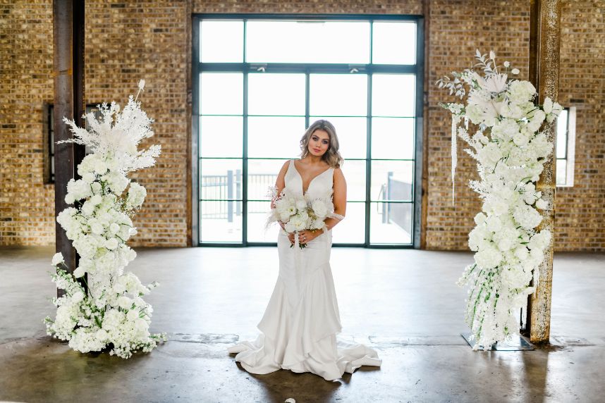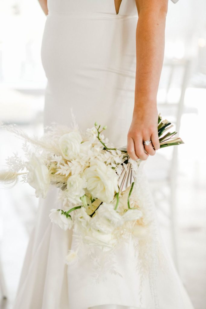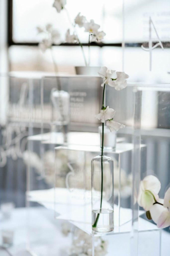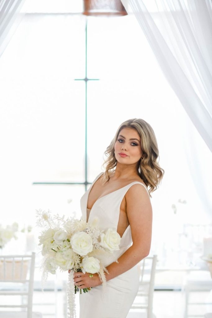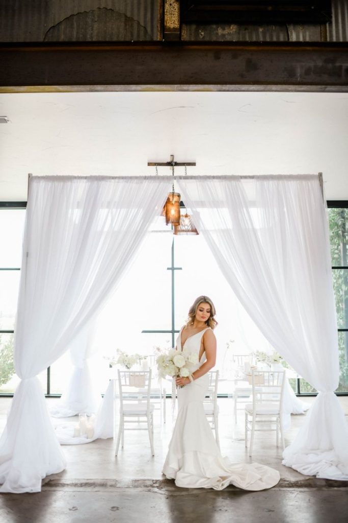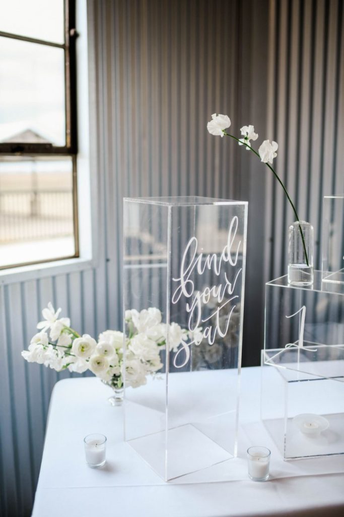 Having a white wedding of your very own is a tale as old as time, but we love seeing new, refreshing ways to rethink the style. This ethereal white wedding inspiration is given a modern touch with clear acrylic decor and rentals from Party Time Rentals that, paired with the styled shoot’s exquisite monochrome floral design, work to elevate and update the billowy white scene. A simplistic tablescape made up of ivory linens and silver flatware carries the same elegant tone seen within this gallery skillfully captured by Rachel Driskell Photography through a bright editorial lens. One of our favorite elements is the abstract acrylic seating chart accented with delicate cream-colored blooms. What a fun way for guests to find their seating! We think this dreamy, ethereal white wedding inspiration is almost too good to be true. Cheers!