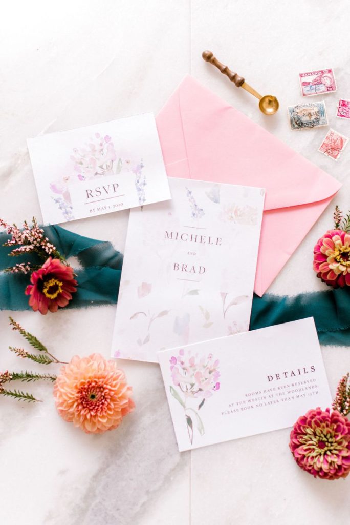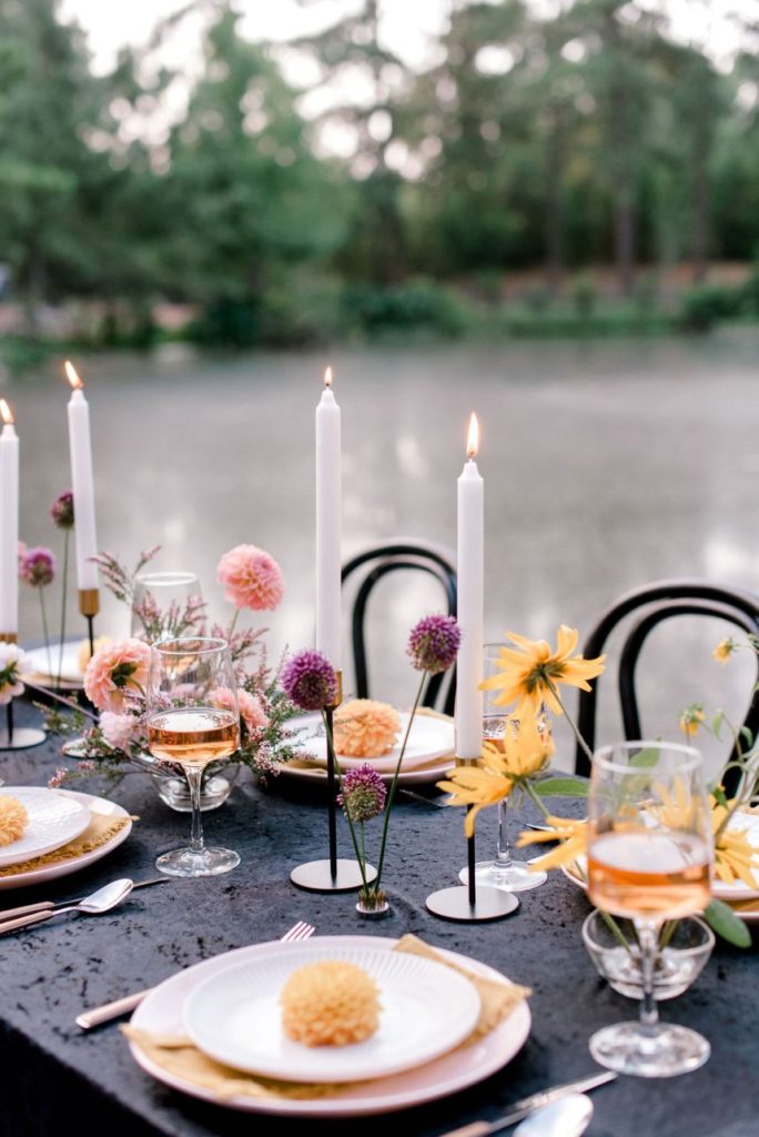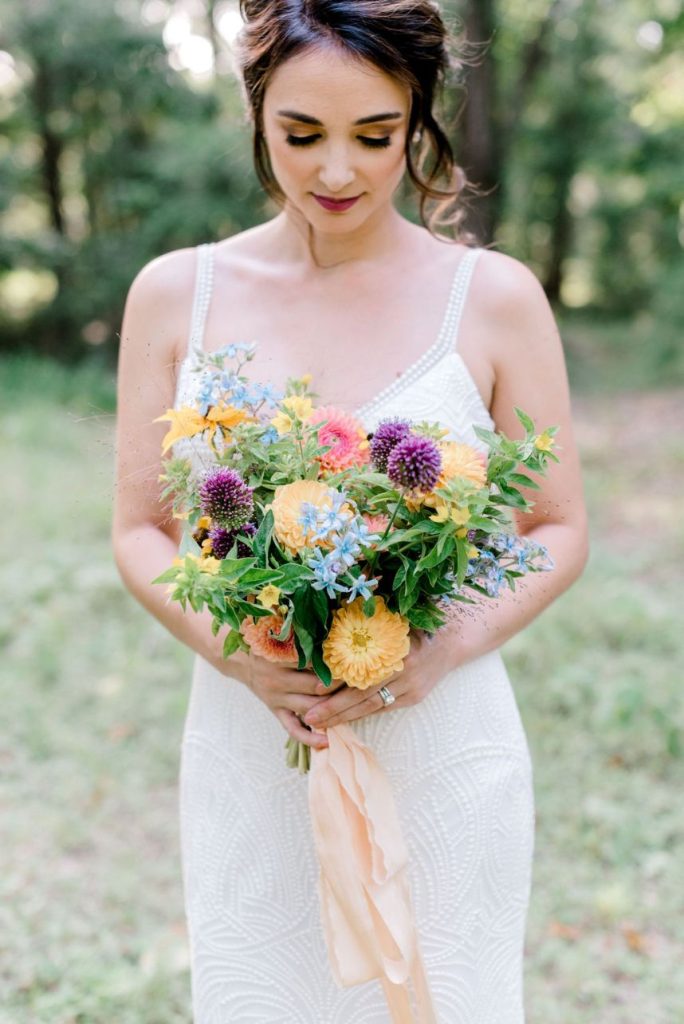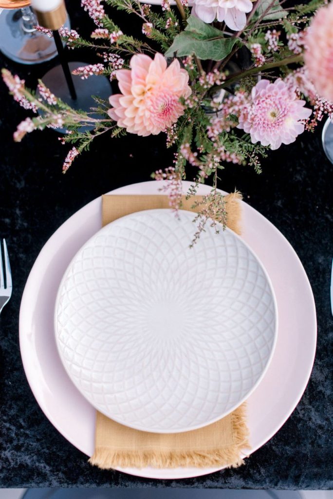 From the owners at Forever 5 Events: “Wildflowers and pastels. This shoot was styled and planned by Candace with Glitter and Whiskey Events. She mixed together a classic and timeless color palette with a modern and almost edgy styling. The balance between soft colors and photography style and the modern bold use of textures is what sets this shoot apart!”