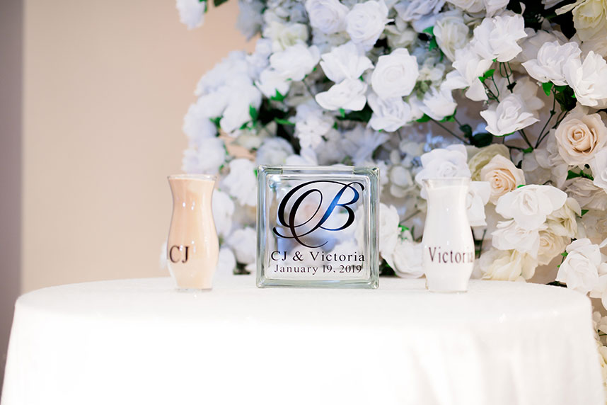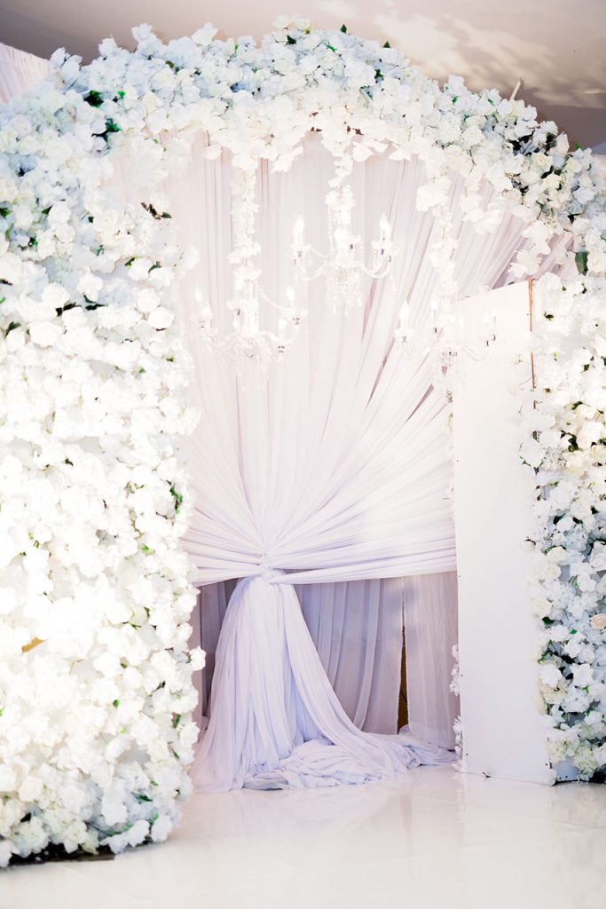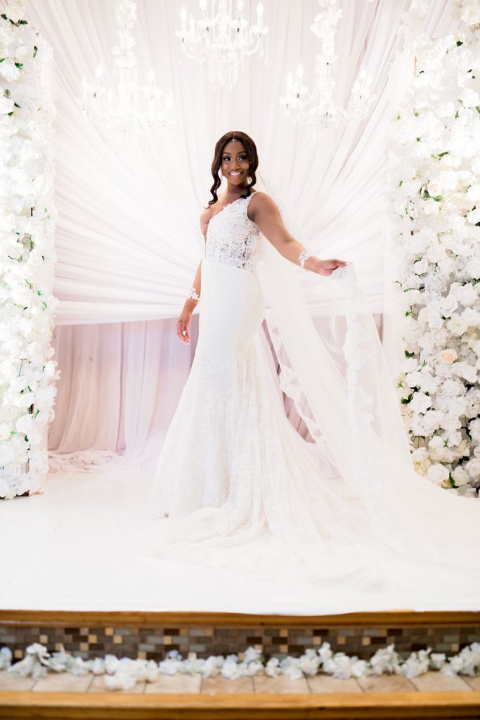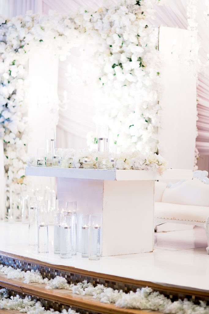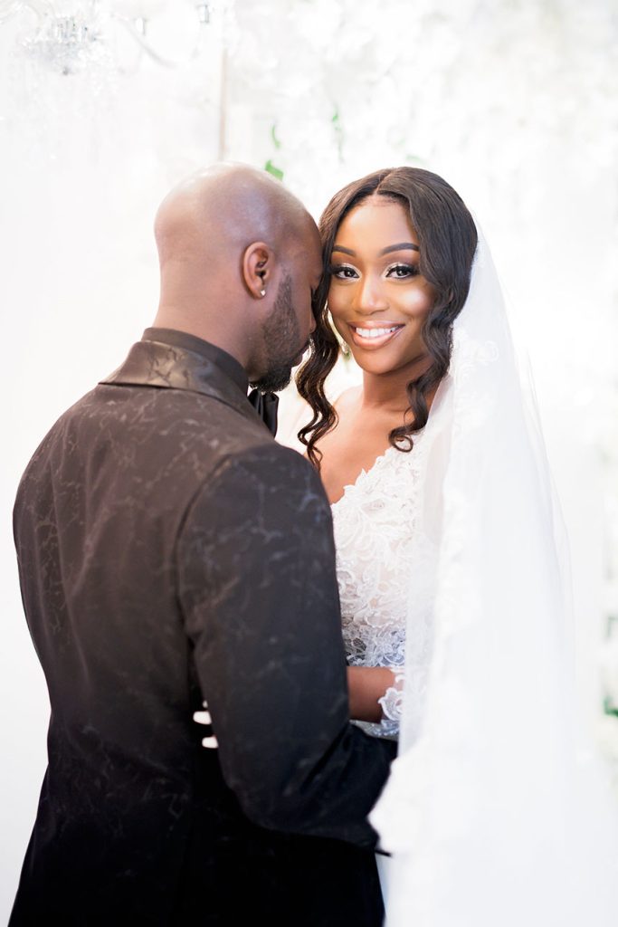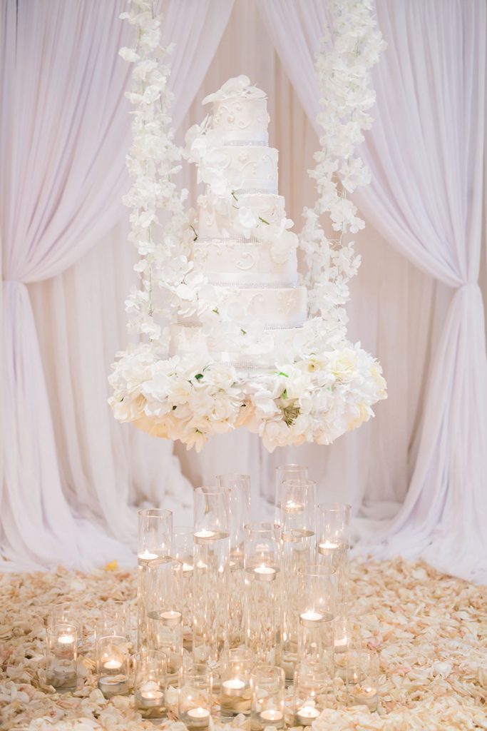 Who doesn’t love an amazing wedding cake table?! As if the white draped, floral arch altar wasn’t enough, the candlelit cake table at Victoria White and C.J. Blackwood’s gorgeous winter white wedding is incredible with the suspended floral embellished cake – love! The bride’s Winnie Couture gown from Houston Bridal Gallery is a must see as well! Thanks to wedding photographer Pharris Photos + Philms for capturing it all so beautifully. Happy scrolling!