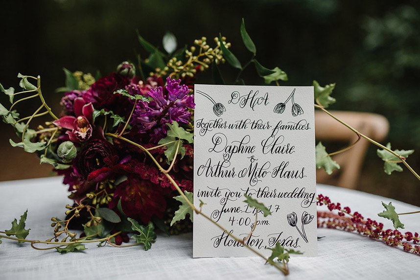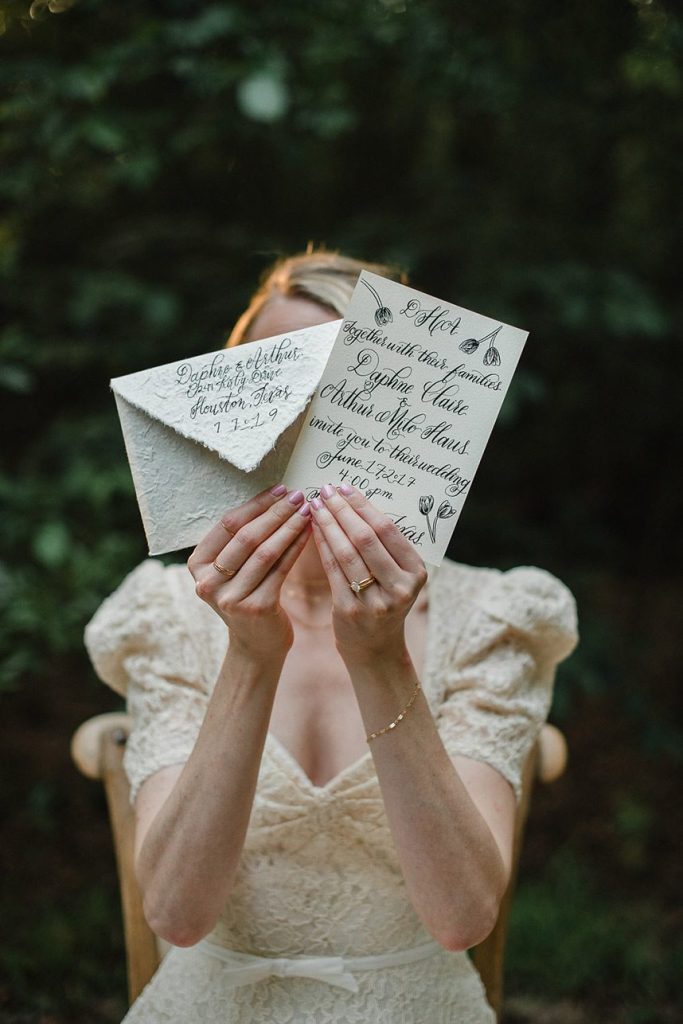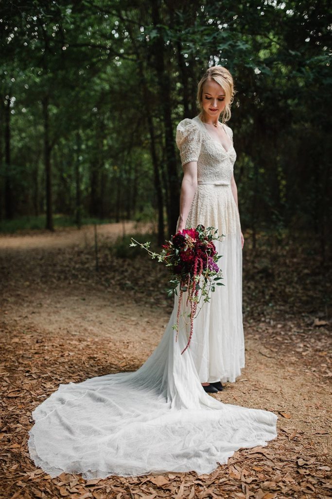 From the planner: “There are so many unique qualities of this shoot! Houston continues to surprise me – all of the dreamy corners and venue and shoot possibilities. I was wanting a dreamy, woodsy feel, and as you know, Houston is not known for woodsy spots. But after much searching, I found one in The Heights, no less! The shoot is also full of local vendors and participants, which I love! The model, Jenna, is a local fashion blogger. She and her husband are adorable and perfect for this shoot! The photographer, Melody, is a native Houstonian and traveling photographer with the most romantic perspective! I was fortunate to be able to have her on my styled shoot team.”