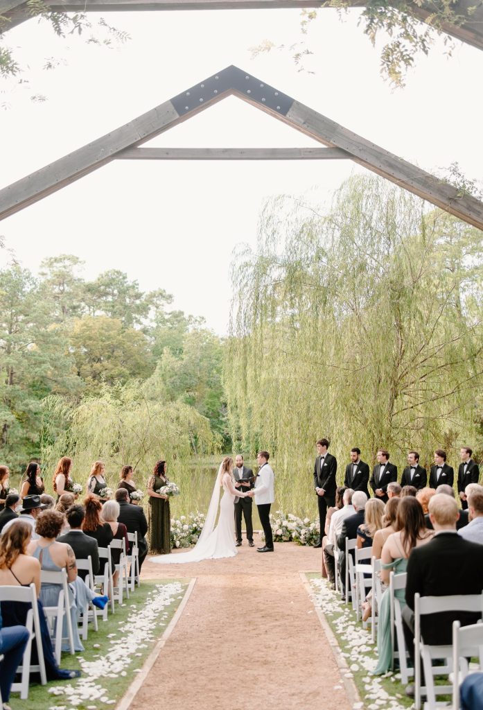 Forever 5 offers a rare blend of indoor & outdoor spaces starting with our modern reception space. Taking inspiration from greenhouses with floor to ceiling windows it sits on a one-acre pond bringing the outdoors inside in a fresh new way. Match that with our one-of-a-kind ceremony area boasting weeping willows & four 24' tall hand-built arches covered in wisteria, your wedding is sure to rival those of storybook romances! Book your tour today!