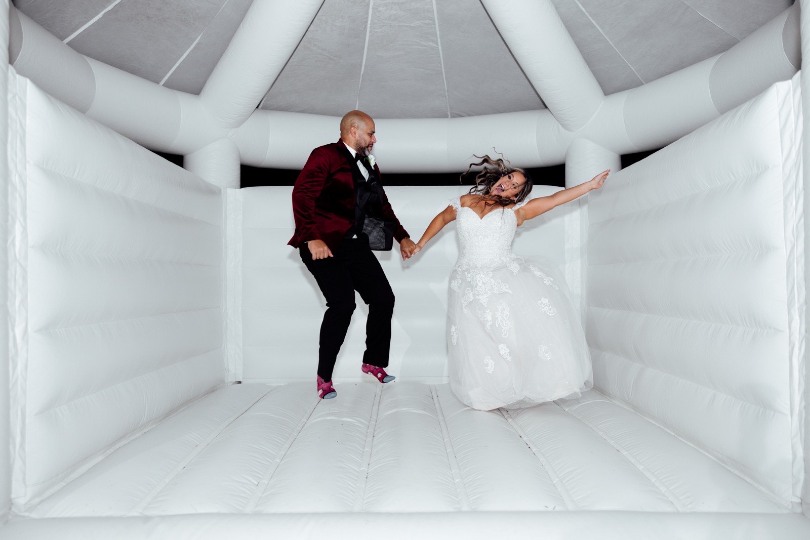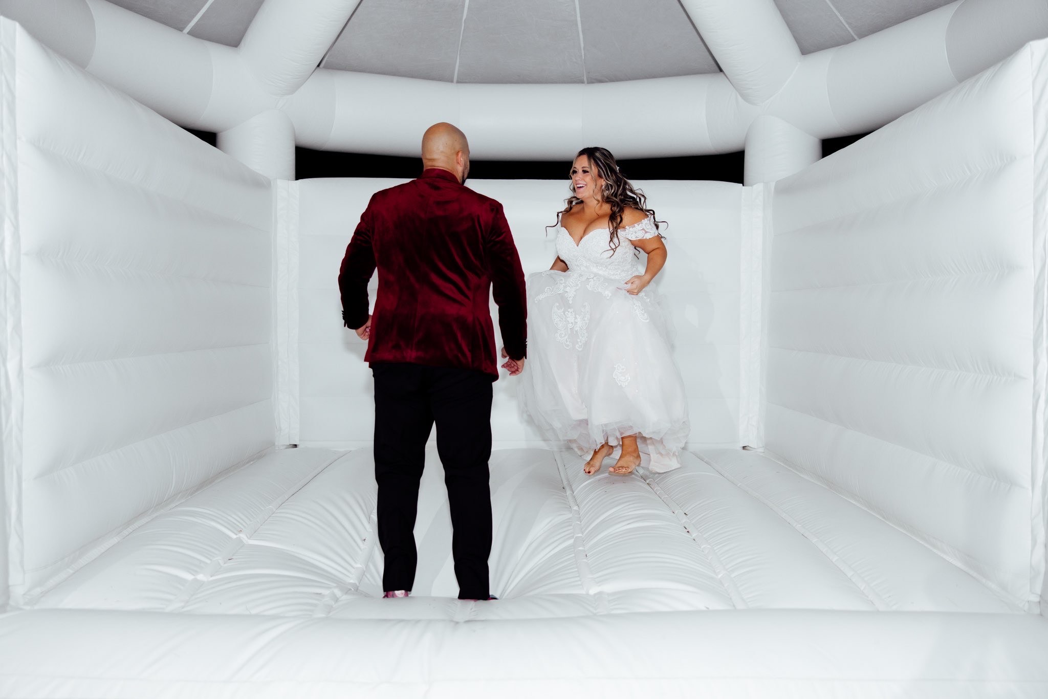 The White Bounce House is here to bring another great attraction to your celebration. We are a luxury bounce house company that provides a beautiful white bounce house custom designed big enough for adults as well as children to jump on. With our elegant design and blank canvas we love to provide a gorgeous back drop of fun for the perfect photo opportunity for your event. So please don't hold back! HERE TO MATCH ANY THEME & COLOR SCHEME