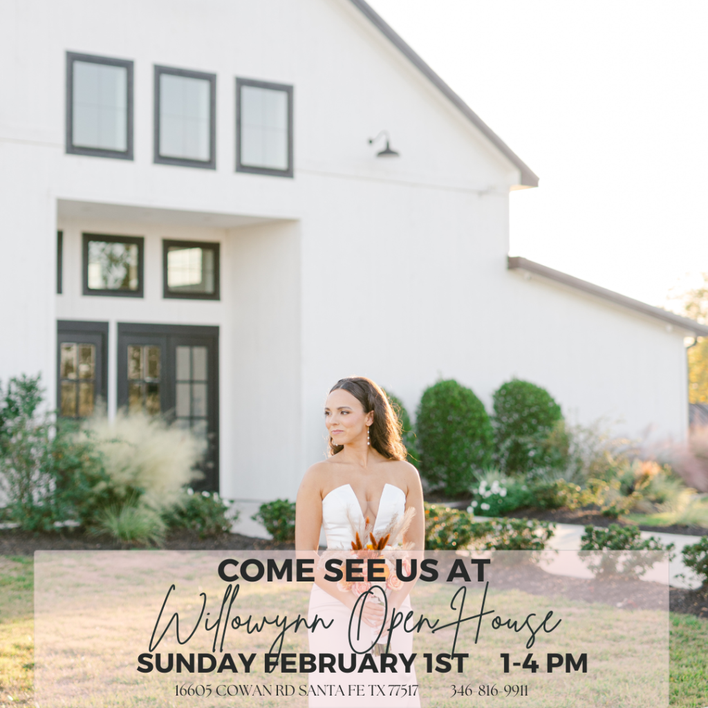 Join Willowynn Barn on Sunday, February 1, 2026, for their next open house! You’ll get a chance to tour the venue and meet some of their favorite wedding vendors. Plus, they will have plenty of drinks, food samples, music, and even Willie the shot donkey! To schedule a private tour of our wedding venue, check date availability, or request more...