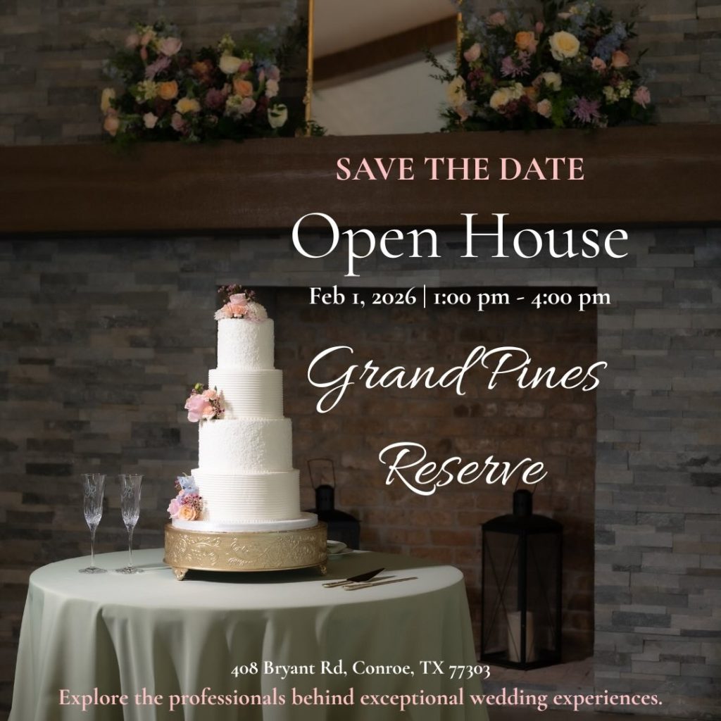 Save the date! Grand Pines Reserve is opening their doors on February 1, 2026 for their annual Grand Pines Reserve Open House. Come explore the venue, meet incredible wedding professionals, and imagine your perfect day coming to life. 📍 408 Bryant Rd, Conroe, TX ⏰ 1:00 pm – 4:00 pm...