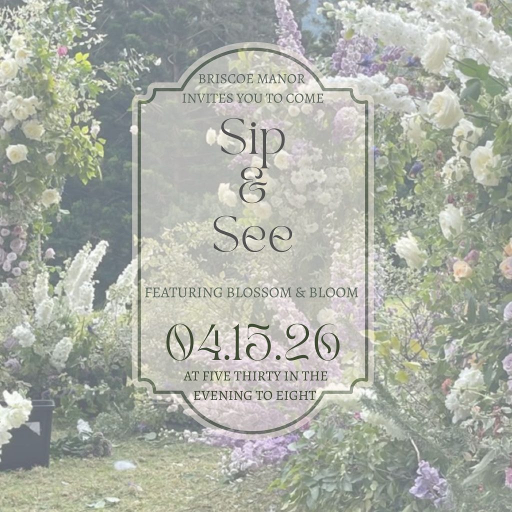 Join us at Briscoe Manor for a special Sip and See in celebration of Blossom & Bloom’s 5-year anniversary. Experience the venue, connect with the team, and enjoy entertainment by Rob Pope & Co. along with a curated group of vendors. Complimentary champagne and light bites will be served....